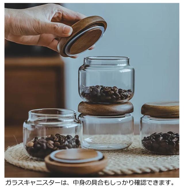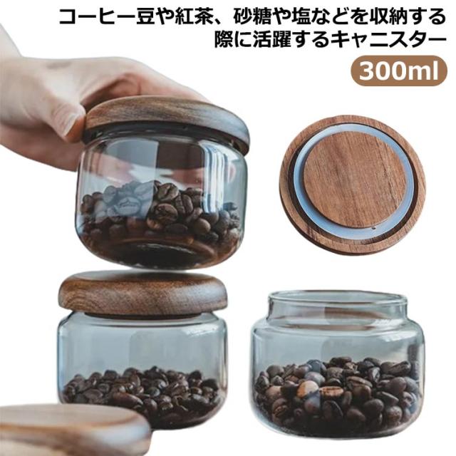 キャニスター ガラスキャニスター Sサイズ 300ml 密封ビン 密閉 珈琲 密封 ガラス コーヒー豆 塩 紅茶 砂糖 耐熱ガラス 調味料入れ 保管 コーヒー 木蓋 ティー 食品保存 ストッカー 可愛い ウナチュラル おしゃれ 保存容器