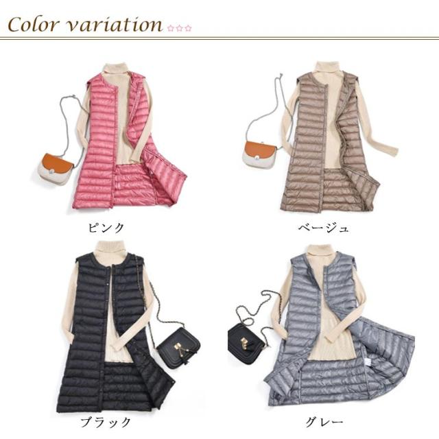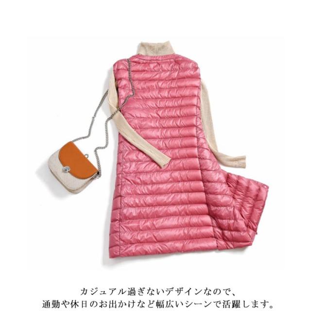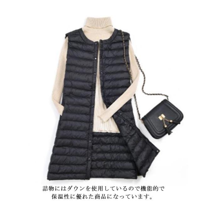 ダウンベスト ロング レディース ライトダウン インナーダウン ベスト ロングベスト スリム 秋冬 軽量 薄手 防寒 保温 あたっか 暖かい ノーカラー 襟なし ダウンジャケット ダウンコート ノースリーブ 大きいサイズ 大人 30代 40代 50代 60代 無地