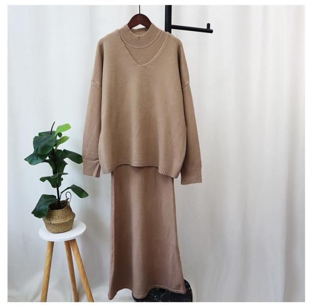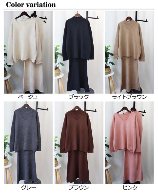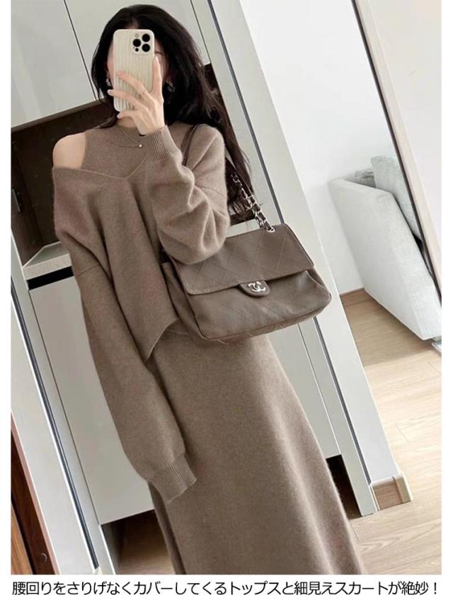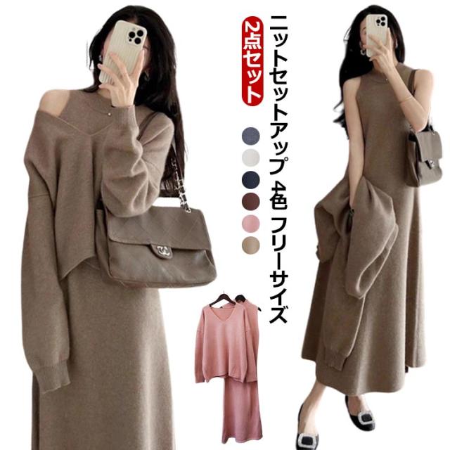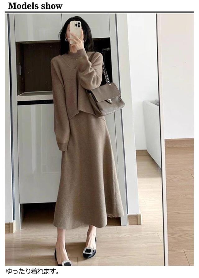 ニットセットアップ レディース 2点セット セットアップ レディース ワンピース スカートスーツ 大きいサイズ ニット セーター ニットワンピース ニットスカート トップス ロングスカート 着回し 無地 通勤 オフィス 上品 きれいめ