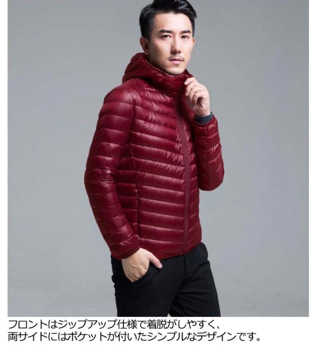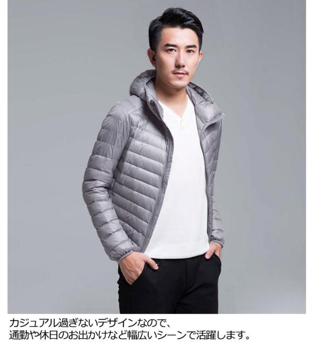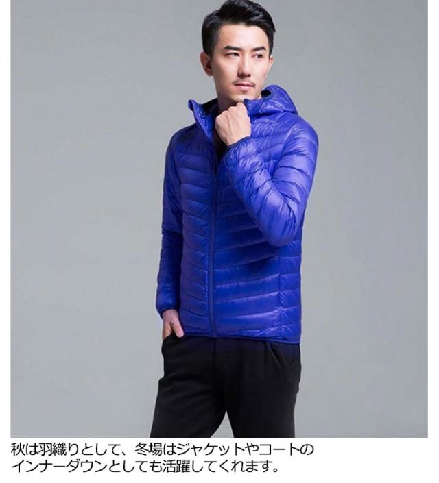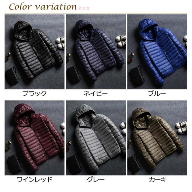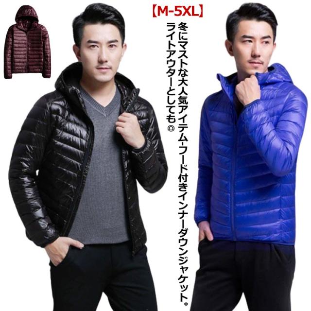 フード付き メンズ コンパクト ライトダウン ジャケット 細身 軽量 薄手 インナーダウンジャケット 暖かい ポケッタブル 防寒 保温 秋冬 撥水 長袖 リアルダウン ダウンジャケット アウター 上着 寒さ対策 大きいサイズ L XL 2XL 3XL インナーダウン