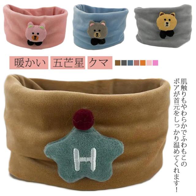 スカーフ ボア ネックウォーマー キッズ こども ティペット フリース 防寒 マフラー 暖かい 五芒星 クマ シンプル かわいい 外遊び 雪遊び 通学 スキー スノボ 女の子 男の子 ガールズ ボーイズ スノーマーク 送料無料
