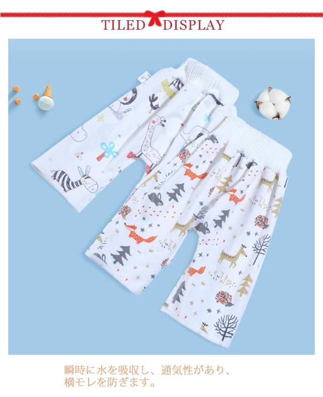 おねしょ ズボン 男の子 女の子 綿 おねしょ パンツ トレーニングパンツ おねしょ対策 寝冷え対策 腹巻付 ズボン キッズ ベビー 防水 通気 長さ33-40cm 0~8歳 12kg~17kg