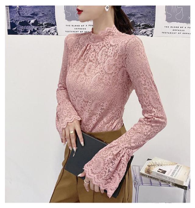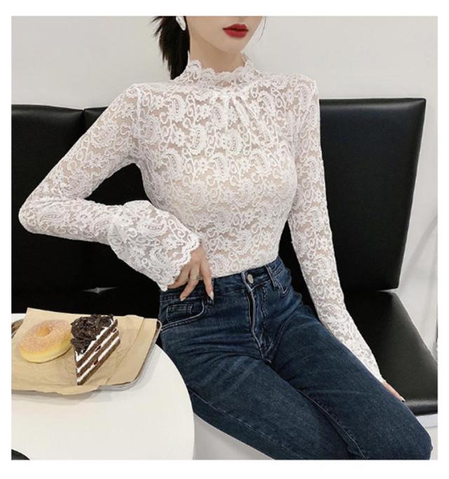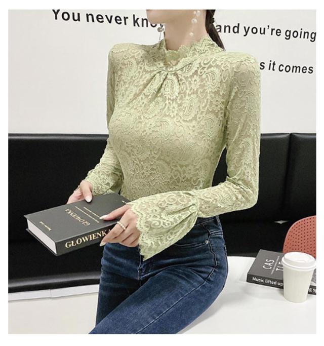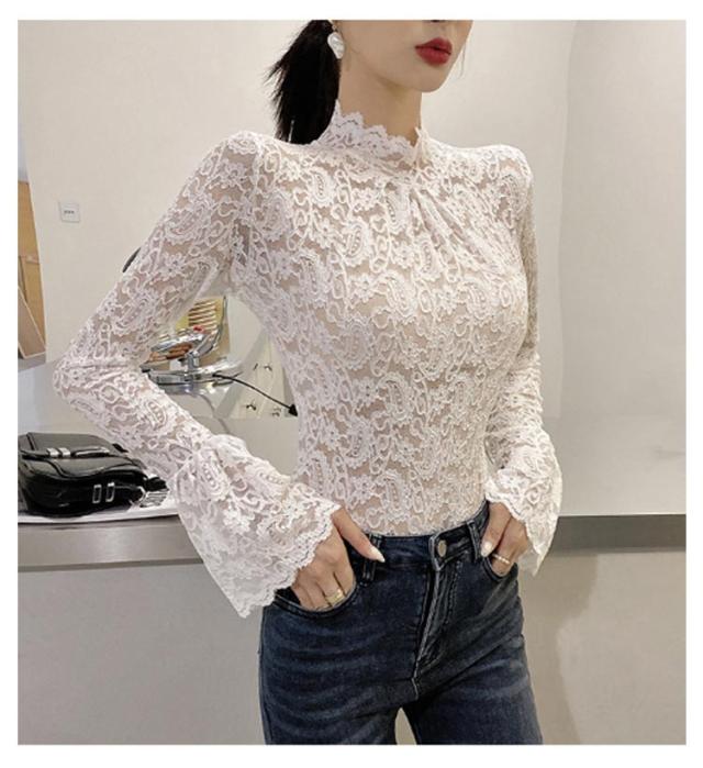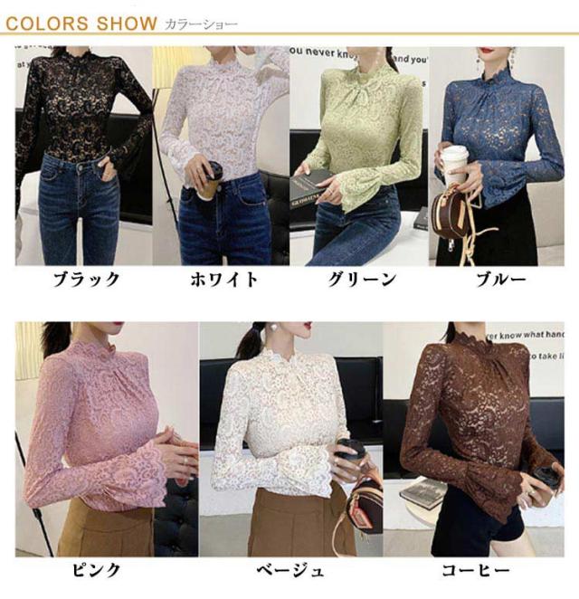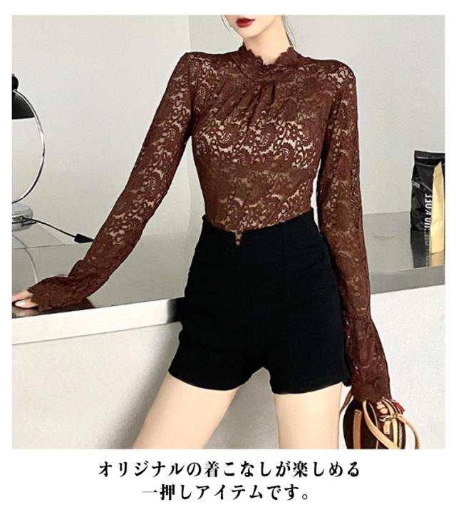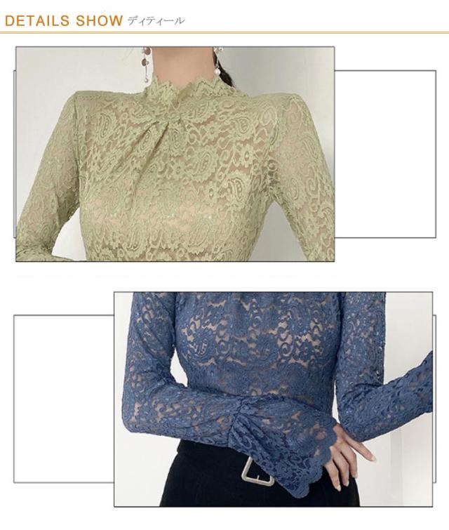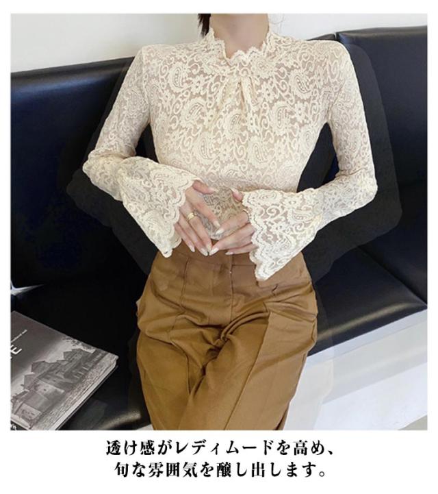 シアートップス レディース レース 長袖 ハイネック レーストップス 透け感 フレア袖 シースルートップス インナー 薄手 花柄 刺繍 レース レイヤード 重ね着 カジュアル きれいめ おしゃれ かわいい 春夏 秋冬 送料無料