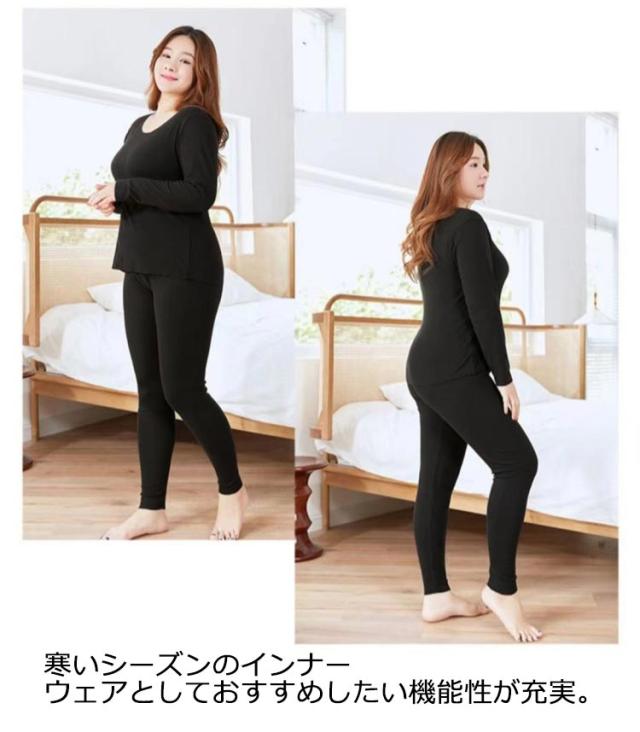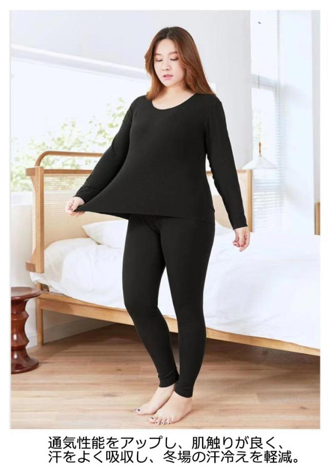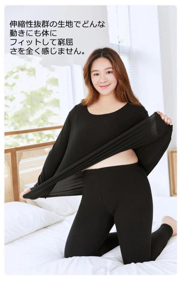 L−6XLサイズ!肌着 両面起毛 上下セット インナー レディース アンダーシャツ 吸湿 通気性 防寒 インナーシャツ パンツ 下着 秋冬用 長袖 クルーネック あったか 保温インナー 暖かい アンダーウエアセット 保温 ズボン ストレッチ