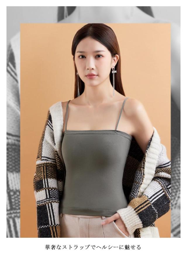 | 【裏起毛キャミソール】【カップ付き】【6color】 華奢なストラップでヘルシーに魅せる ブラ不要で重ね着いらずで着膨れしがちな冬にうれしい♪ 表地は通常の生地でインナー感を出さず、裏はふかふかの裏起毛でしっかりあったか。 ナローストラップがトップスに響きにくいのでタイトなトップスのインナーにも◎ カーデやジャケットのインナーとして活躍するアイテムです! ルームウェアとしても、インナーとしても万能です。 トレンドのシアーシャツと合わせて透けさせて着るとおしゃれ。 | |