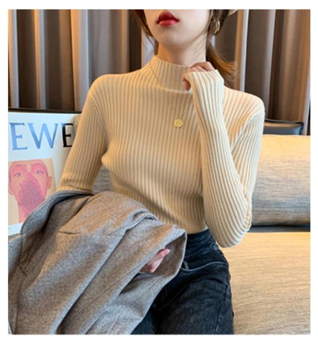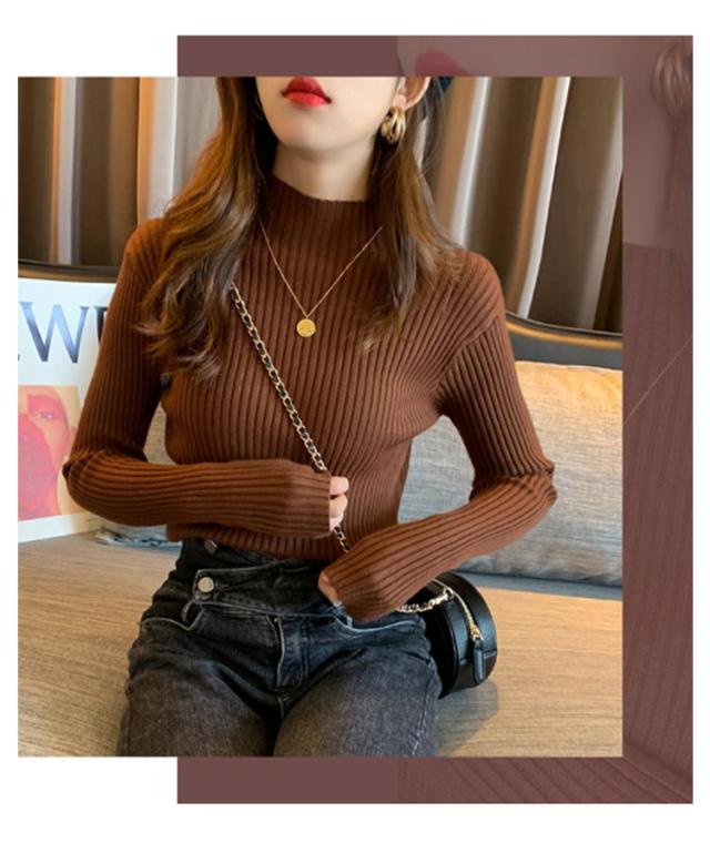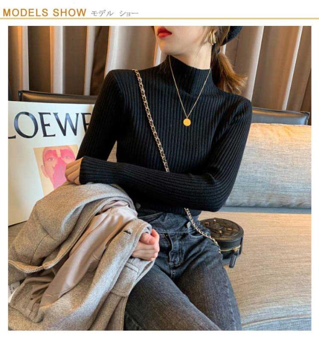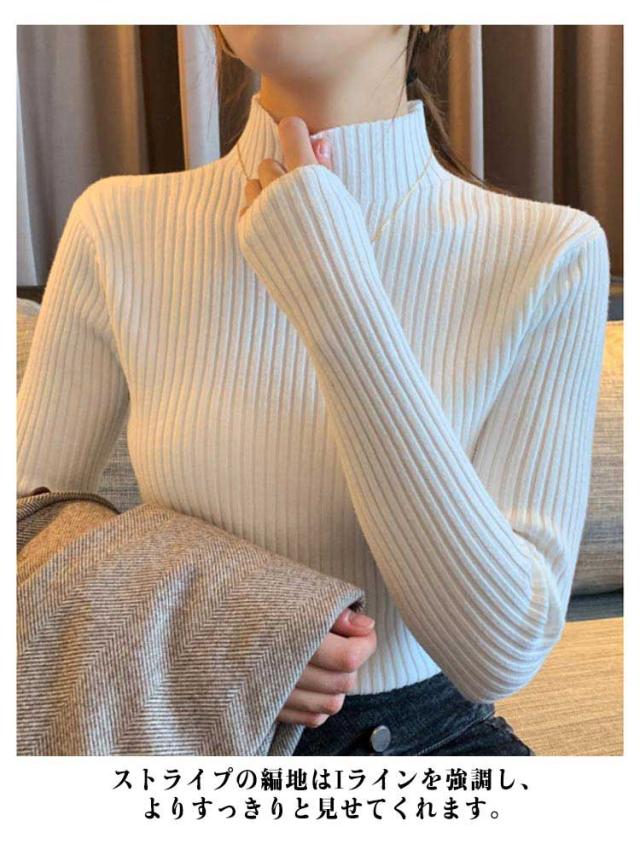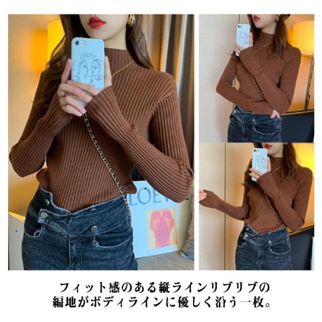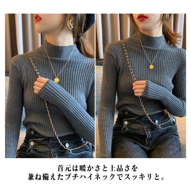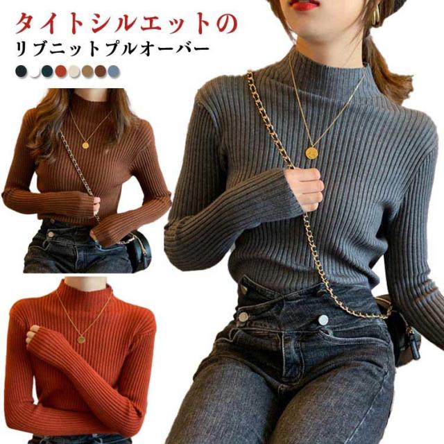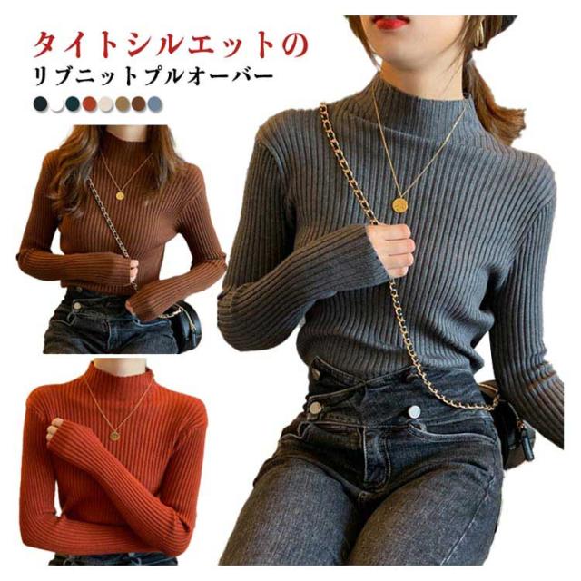 ニット 長袖 秋 冬 秋冬 春 レディース モックネック ハイネック プチハイネック 太め リブ ニット レディースニット リブ タイトニット コンパクト 細身 プルオーバー ニットトップス 着回し 通勤 オフィス