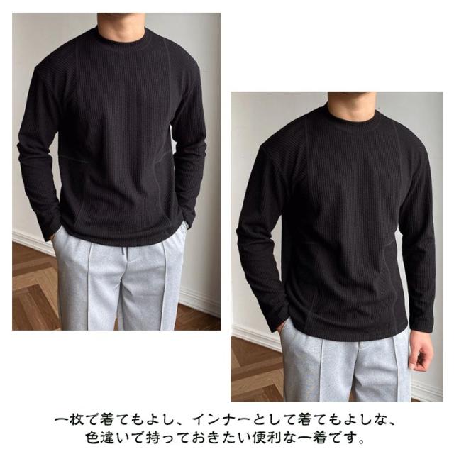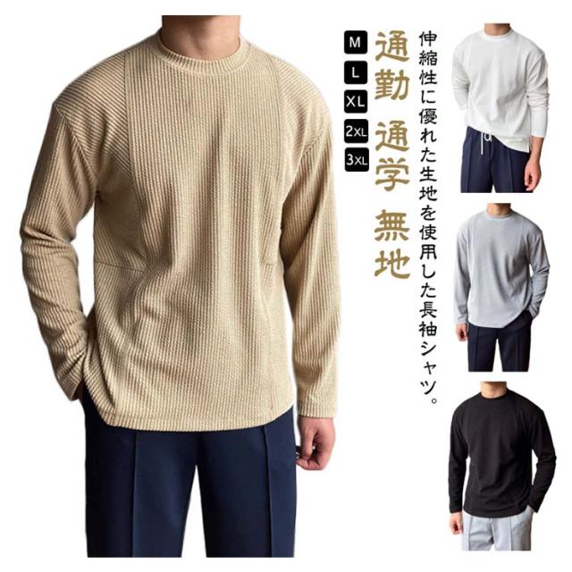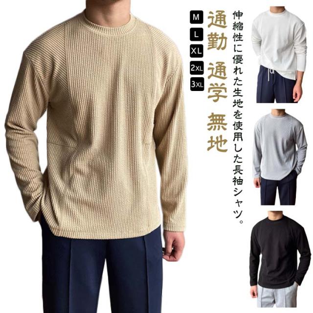 長袖Tシャツ Tシャツ メンズ トップス 長袖 薄手 トレーナー クルーネック。加通勤 通学 長袖シャツ ブラック 黒 ホワイト 白 カットソー ロングスリーブ 無地 カジュアル シンプル