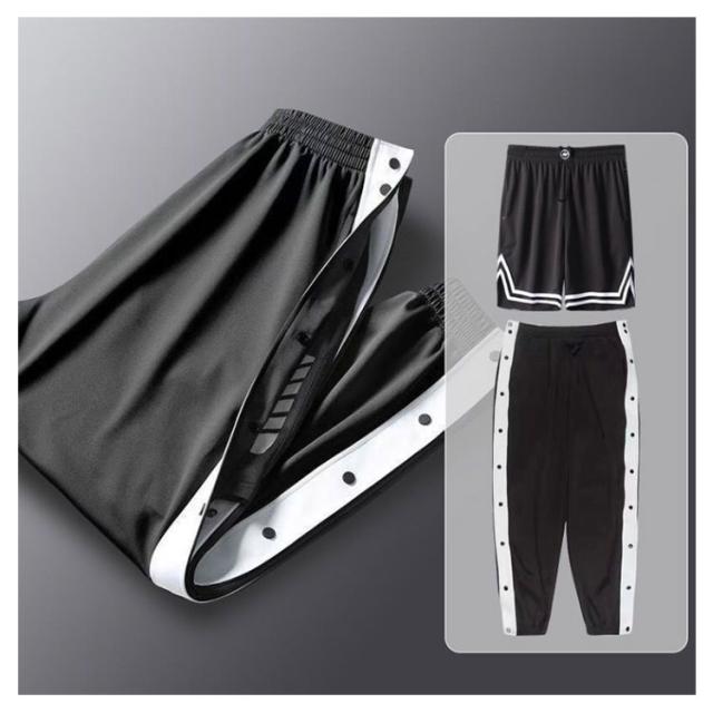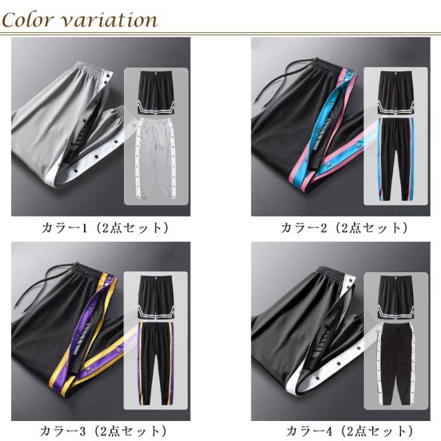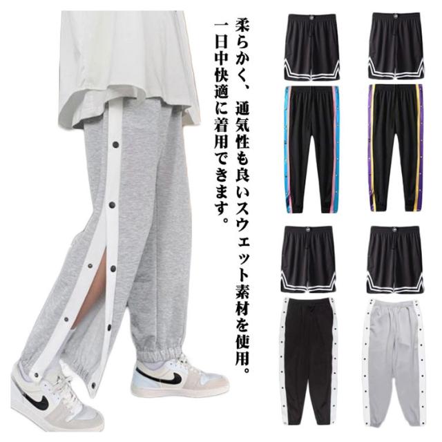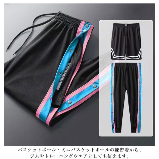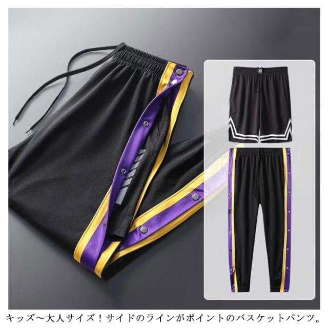 男の子 男性 ジュニア バスパン キッズ 大人 バスケットパンツ 2点セット!バスケパンツ レディース スナップボタン 裾ボタン サイドボタン サイドライン 長ズボン ロングパンツ ジャージ 下 メンズ 女の子 バスケットボールパンツ