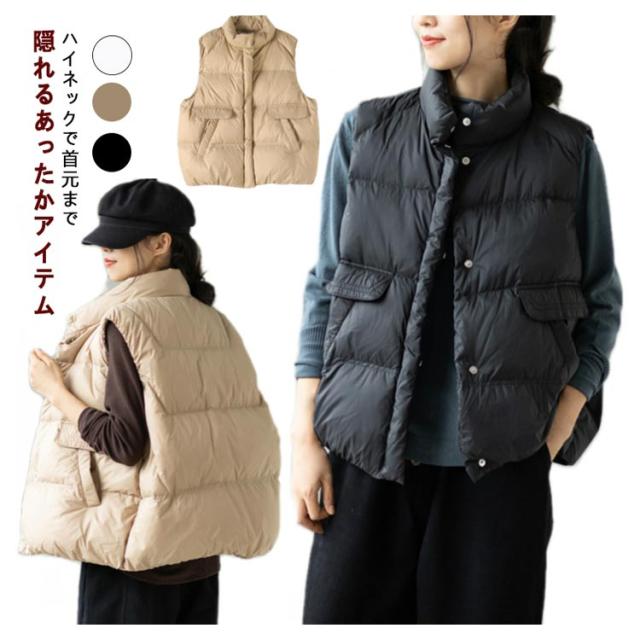 ダウンベスト レディース ベスト レディース アウター 秋冬 秋 冬 防寒 かわいい おしゃれ もこもこ スタンド フードなし フェイク ダウン カーキ ホワイト ブラック ダウンベスト ジャケット カジュアル 大きいサイズ ストリート あったか