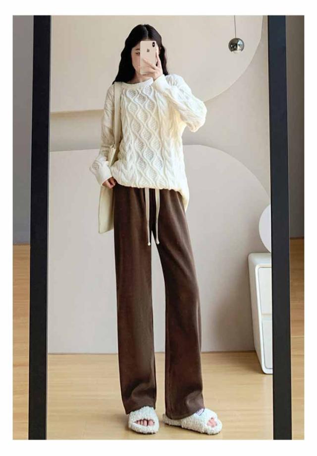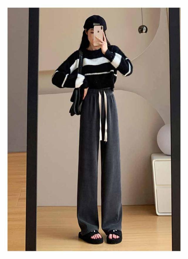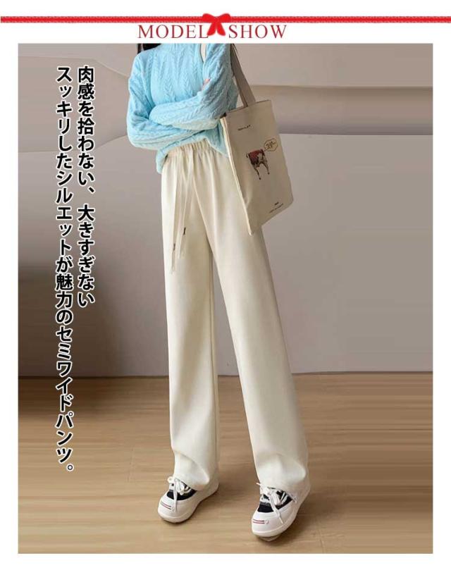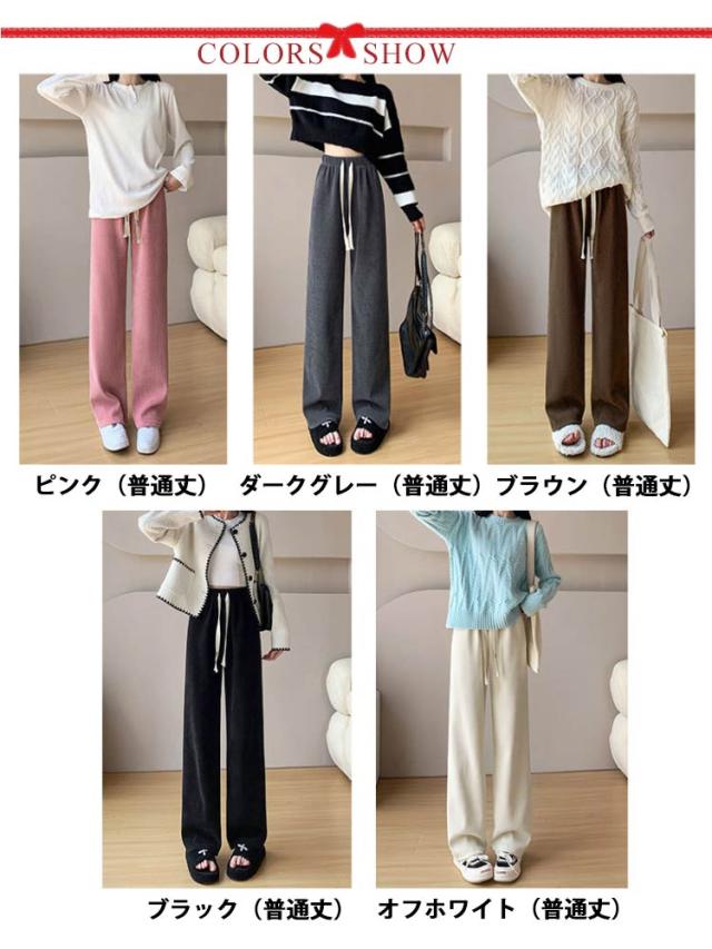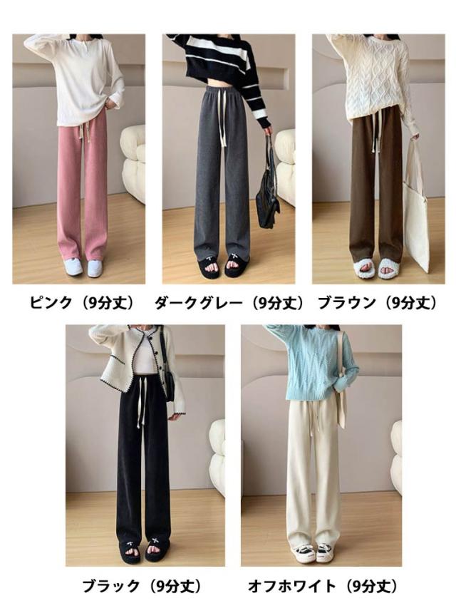 コーデュロイパンツ レディース セミワイドパンツ セミ ワイド パンツ 春秋 ロング ゆったり ストレートパンツ ウェストゴム ロングパンツ 短め 長め 普通丈 長ズボン ウェスト紐 部屋着 秋物 ストレート 体型カバー イージーパンツ 無地