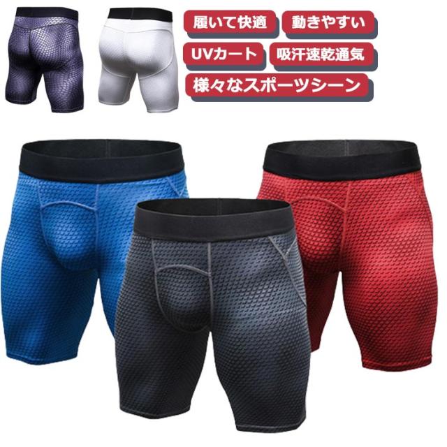 着圧 スパッツ トレーニング メンズ 快適 スパッツ ハーフ メンズパンツ 吸汗速乾 スポーツ用インナー フィットネスウエア 無地 トレーニング
