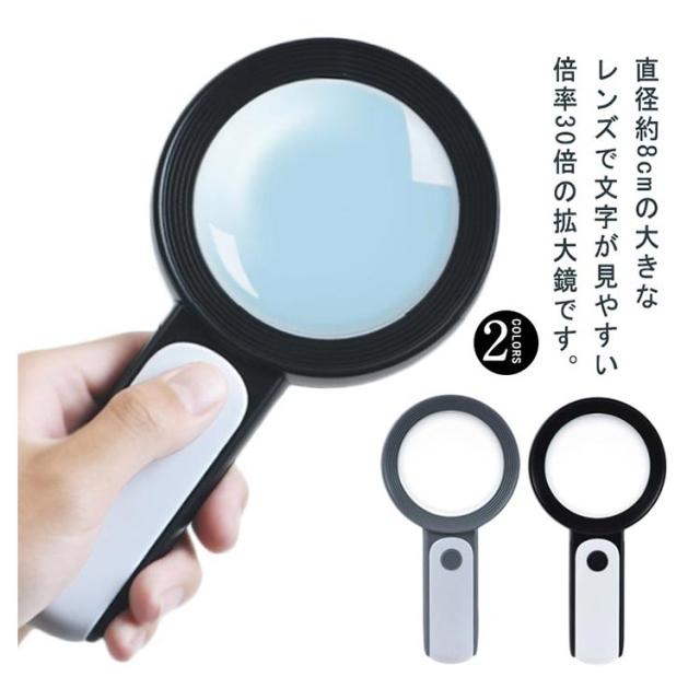 手持ちルーペ 30倍 LEDライト付き 拡大鏡 虫眼鏡 ルーペ 高倍率 拡大レンズ 軽量 携帯便利 読書 新聞 鑑定用 使いやすい 母の日 父の日 敬老の日 贈り物 ギフト プレゼント