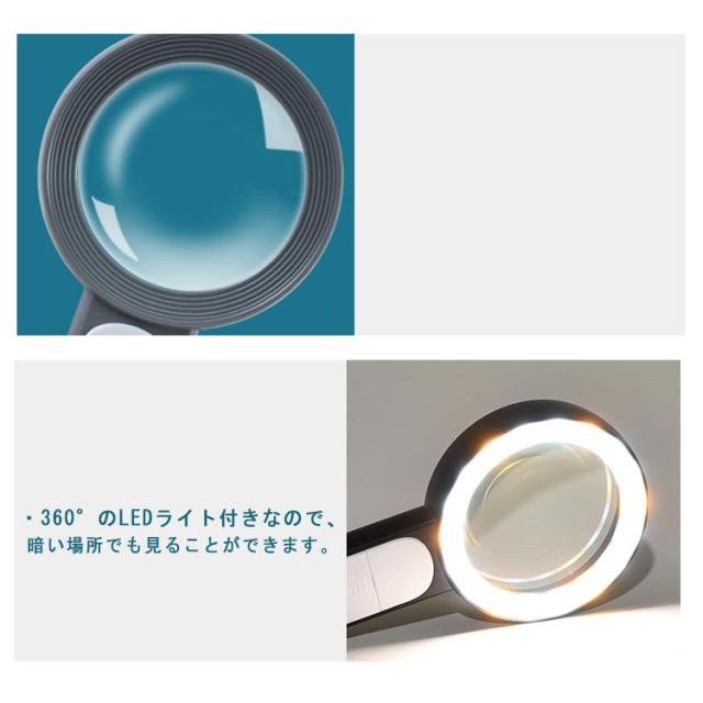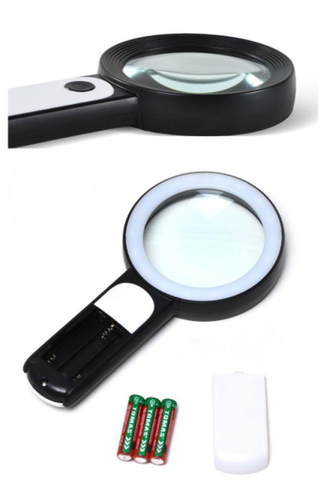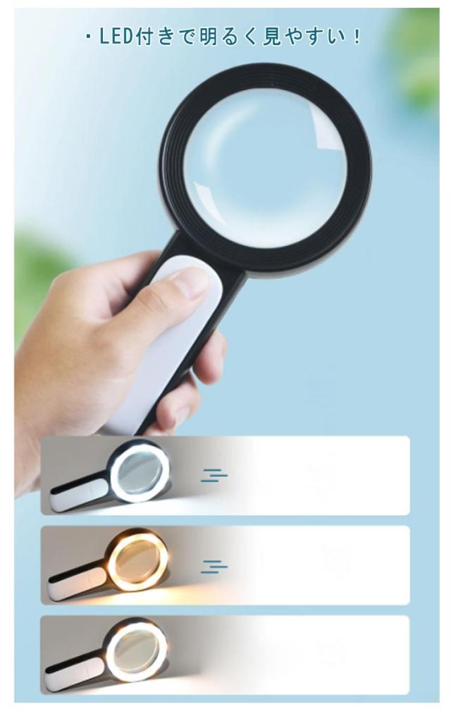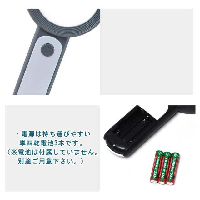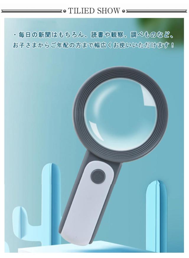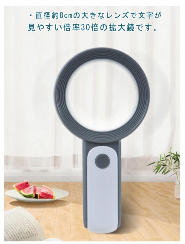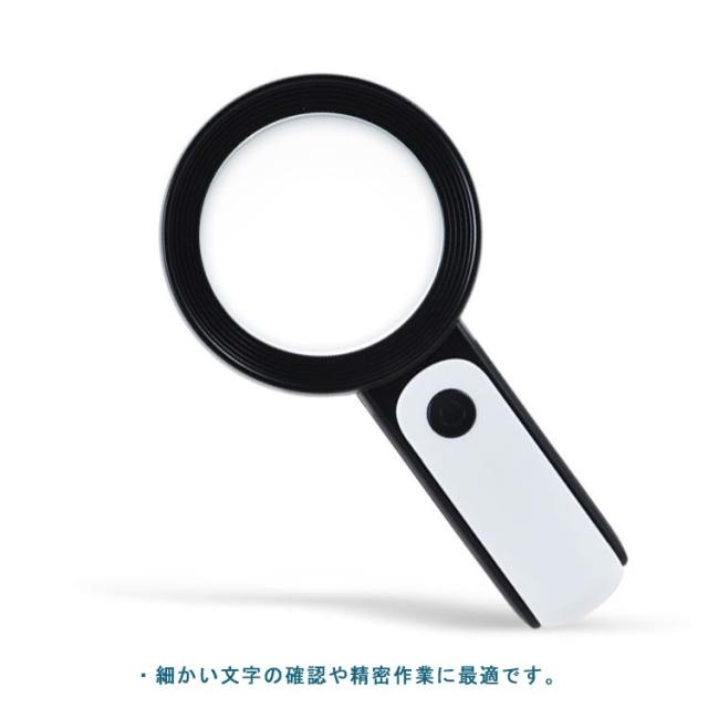 | ・LED付きで明るく見やすい! ・直径約8cmの大きなレンズで文字が見やすい倍率30倍の拡大鏡です。 ・360°のLEDライト付きなので、暗い場所でも見ることができます。 ・細かい文字の確認や精密作業に最適です。 ・電源は持ち運びやすい単四乾電池3本です。(※電池は付属していません。別途ご用意下さい。) ・毎日の新聞はもちろん、読書や観察、調べものなど、お子さまからご年配の方まで幅広くお使いいただけます! | |