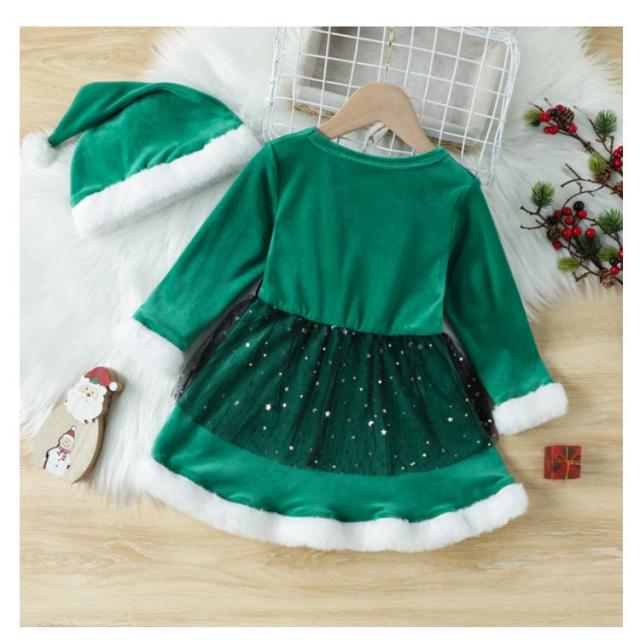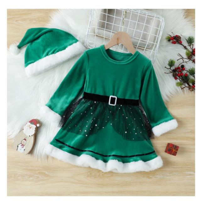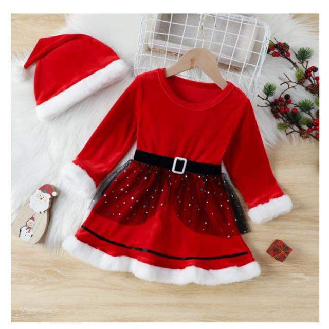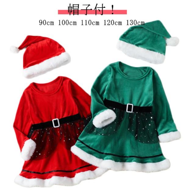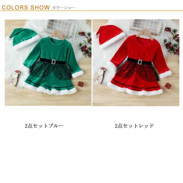 2点セット クリスマス コスチューム 衣装 女の子 かわいい キッズ サンタクロース サンタ ワンピース スカート 衣装 帽子 赤 青 ふわふわ 長袖 子供 姉妹 子ども こども 起毛 フリース あったか 防寒 スカート 送料無料