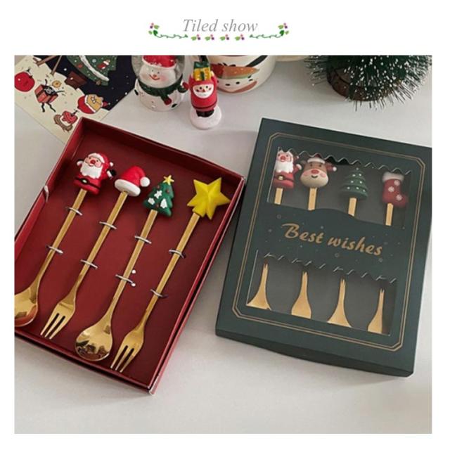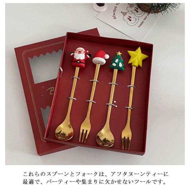4本セット クリスマス スプーン フォーク セット ギフト用箱付き クリスマス ステンレス鋼 スプーンのフォーク エスプレッソ スプーン クリスマス スプーン セット ステンレス スチール ティー クリスマス プレゼント 食器セット