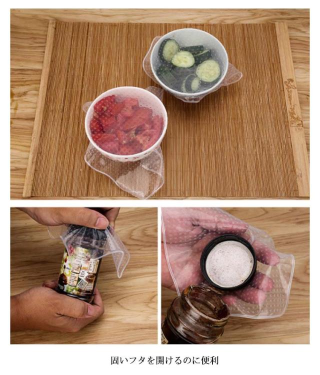 | 電子レンジ・冷蔵庫OK 繰り返し使えるエコアイテム伸びてくっつくシリコンラップ 液体もこぼれにくしい! 鍋敷きやコースター代わりに 滑り止めとして カップの密封に 固いフタを開けるのに便利 | |