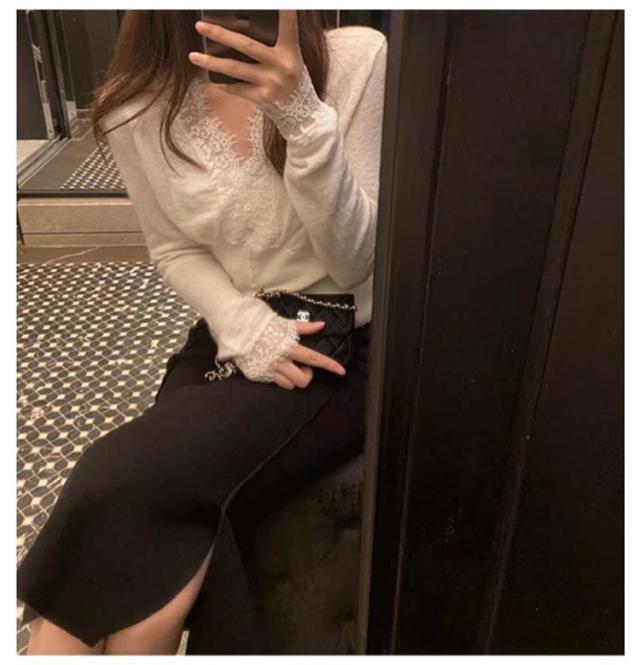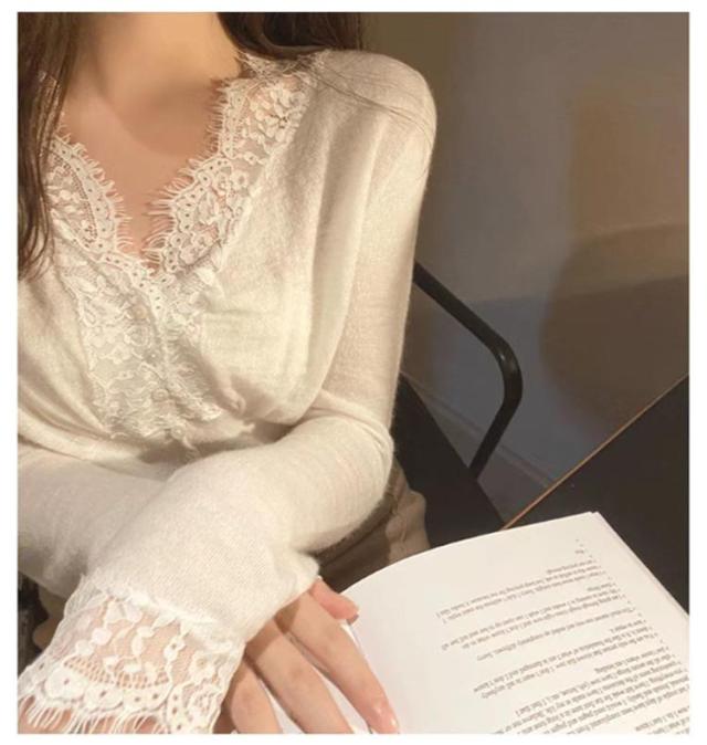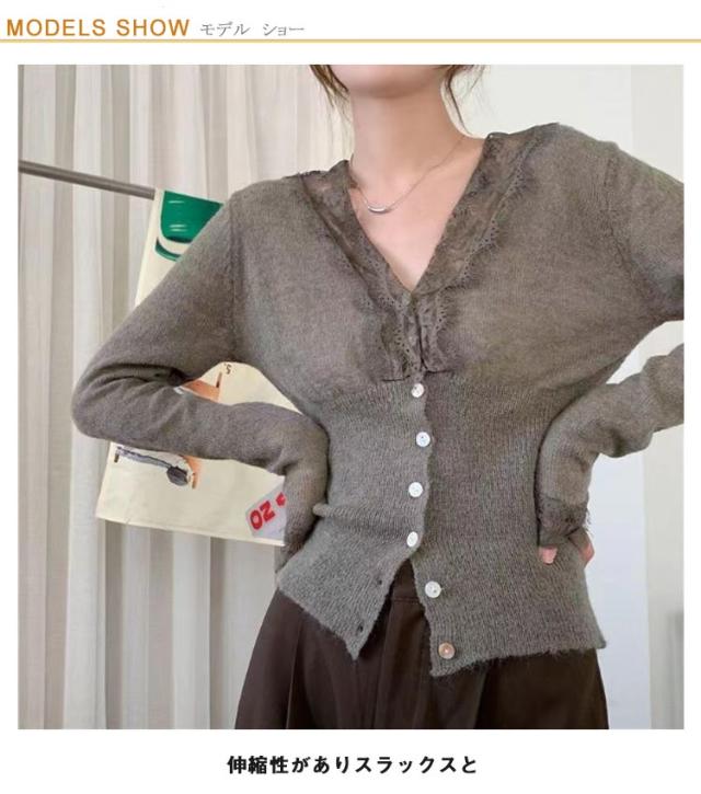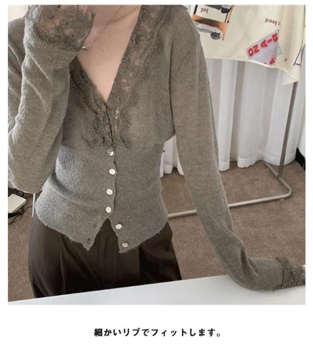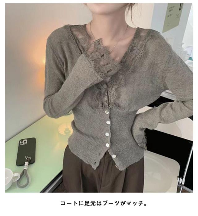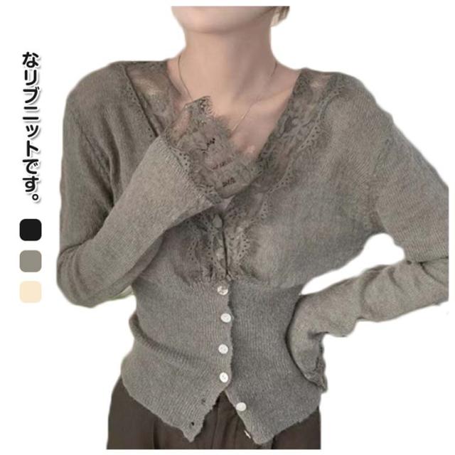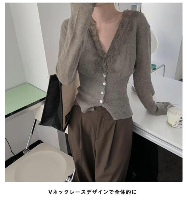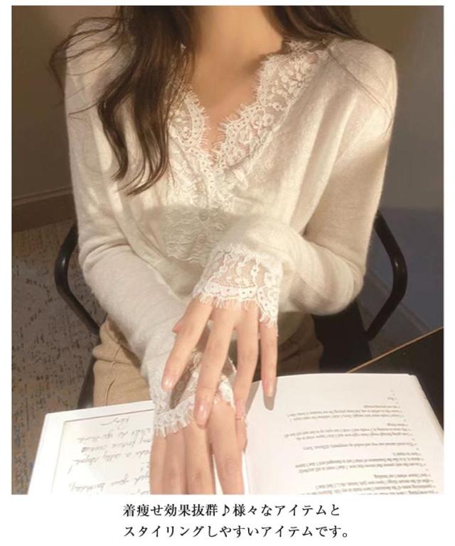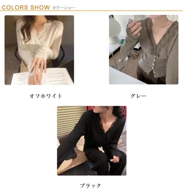 ニットトップス レディース ニット 長袖 ニットセーター レース 前開き リブニット Vネック インナー 秋冬 防寒 下着 秋冬 秋服 冬服 春服 韓国風 重ね着 きれいめ カジュアル 大人 シンプル 可愛い おしゃれ お出かけ デイリー 普段着 オフィス 通勤