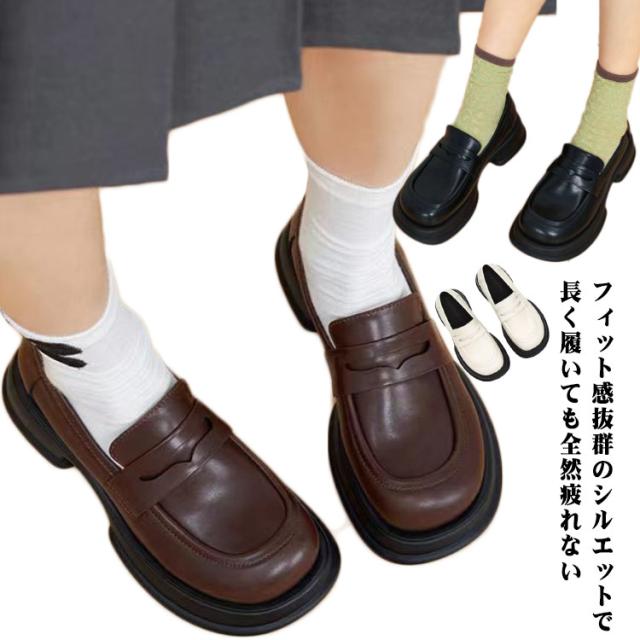 厚底 ローファー レディース フラットパンプス レディース 靴 歩きやすい ホワイト ブラウン ブラック 美脚 靴 シューズ パンプス 疲れにくい やわらかい 定番 卒園 高校生 通勤 通園 通学 女性 楽チン 靴 オフィス シンプル 滑り止め おしゃれ