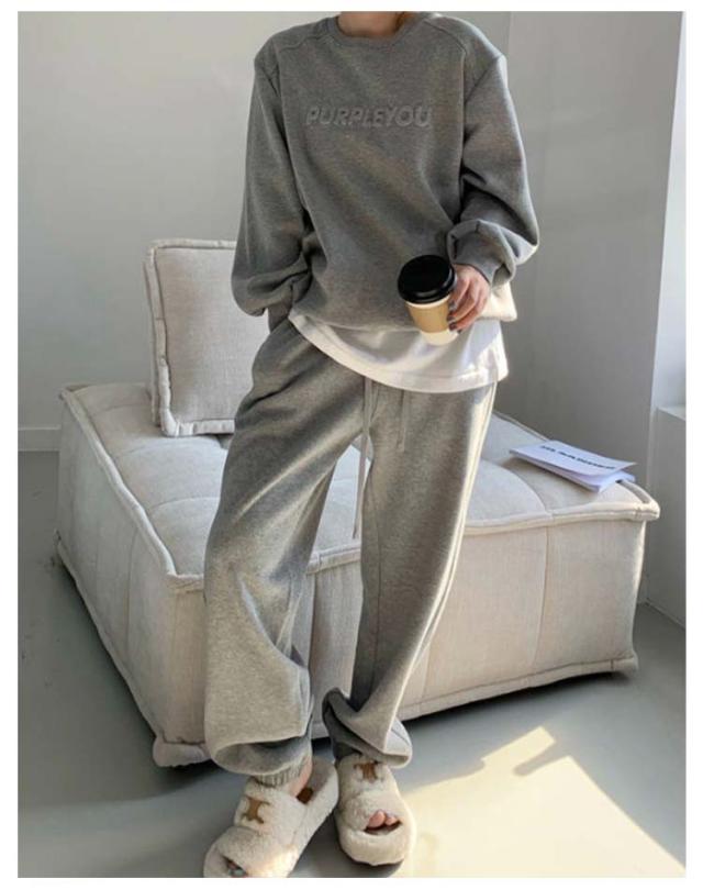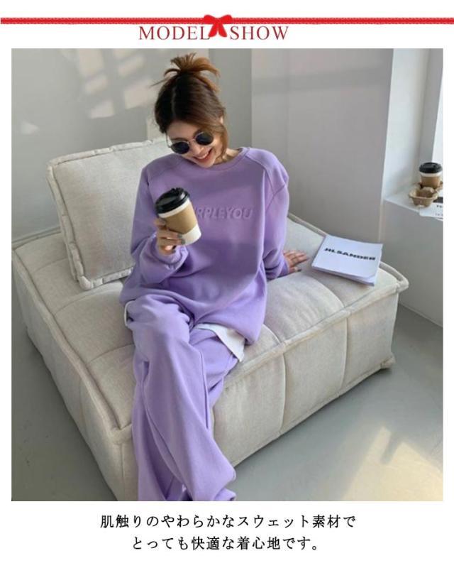 ルームウェア 韓国 レディース セットアップ 上下セット オシャレ 韓国ファッション エンボス加工 ロゴ スウェット パジャマ 長袖 パンツ ボトムス あったか 秋 冬 春 秋冬 防寒 大きいサイズ 大人可愛い 修学旅行 外出 スポーツウェア