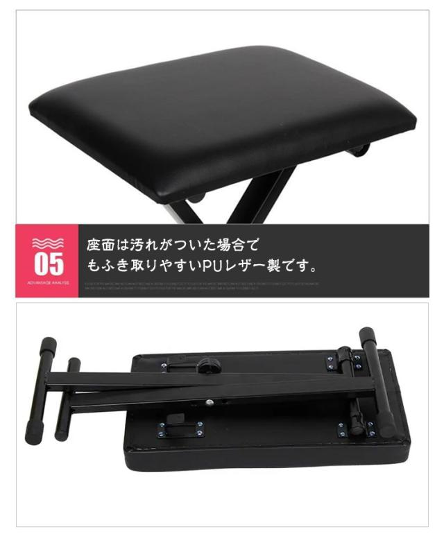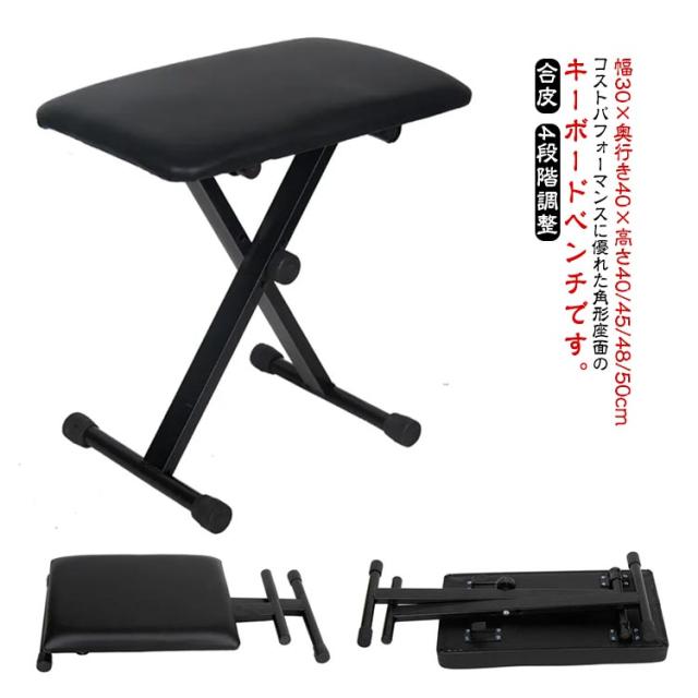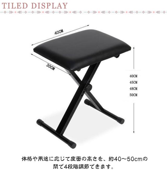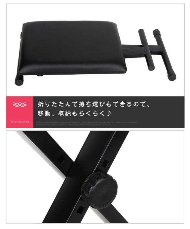 キーボードベンチ 椅子 スツール 折りたたみ 4段階調整 高さ調節 X型 いす イス クッション 軽量 コンパクト キーボード 電子ピアノ 演奏 発表会 合皮 無地 ブラック おしゃれ 送料無料