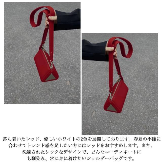 | 【嬉しい携帯収納機能】 カード、小銭、鍵、携帯など外出に必要なものが入るサイズ感に設計されており、気軽に持てるミニバッグに仕上がり、デイリー使いにもピッタリです。 落ち着いたレッド、優しいホワイトの2色を展開しております。春夏の季節に合わせてトレンド感を足したい方にはレッドをおすすめします。また、洗練されたシックなデザインで、どんなコーディネートにも馴染み、常に身に着けたいショルダーバッグです。 【喜ばれるギフト】 機能性とデザイン性を両立させたアイテムで、通勤通学、お出かけなどはもちろん、デート、食事会、パーティー、披露宴、イベンドなど幅広くいシーンにご活用頂けます。また、自分へのご褒美やお友達とのお揃いや誕生日、記念日などのプレゼントにも適しています。 | |