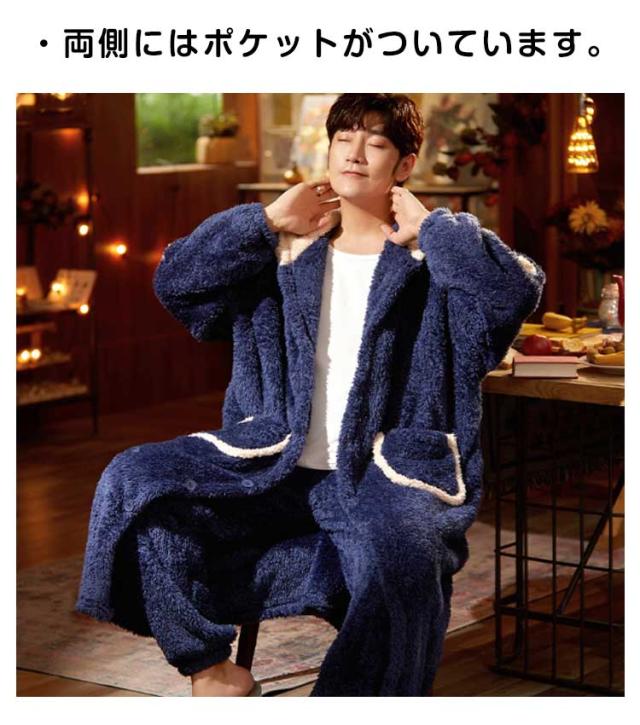 ルームウェア もこもこ メンズ 上下セット 着る毛布 ロング カーディガン ロングパンツ ナイトガウン ふわふわ 前開き 部屋着 外出 フード付き 長袖 ナイトウェア 寝巻き あったかグッズ 暖かい 厚手 保温 テレワーク 在宅 大きいサイズ 秋 冬