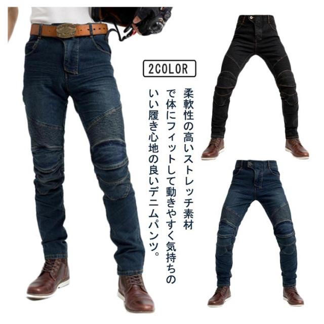 バイクジーンズ バイクパンツ メンズ デニムパンツ ライダーパンツ 春秋冬 防風保温 腰膝パッド装備 耐磨 レーシングパンツ ライディングパンツ 送料無料 バイクウェア 男のバイクパンツ