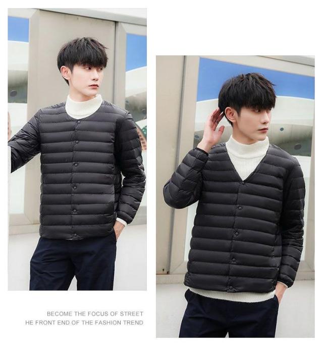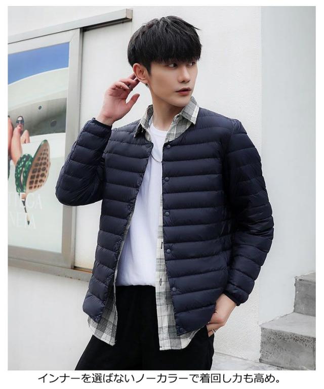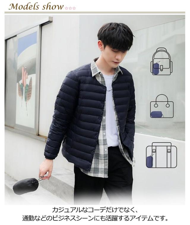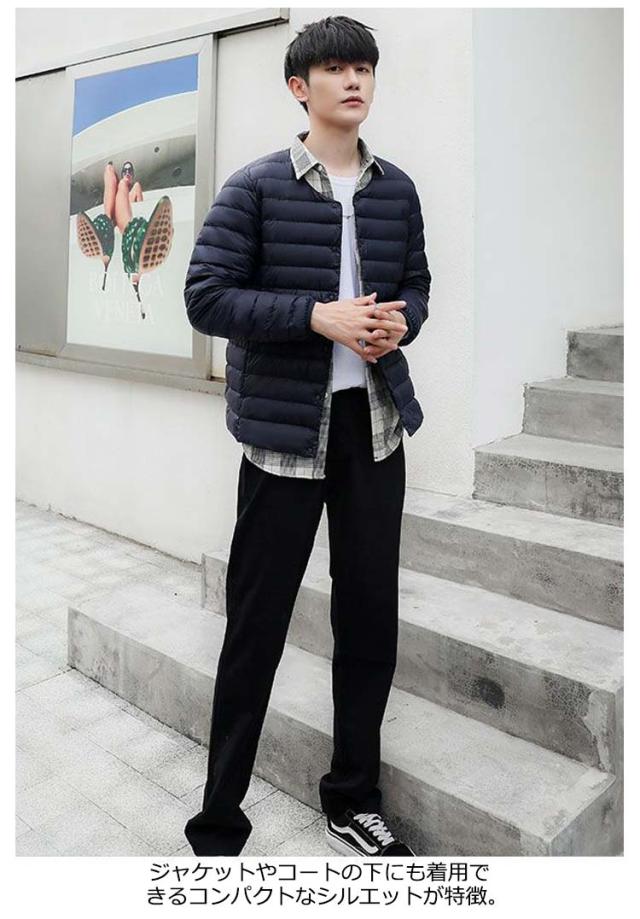 インナーダウン ジャケット メンズ 秋冬 ダウンジャケット Vネック クルーネック ライトダウン インナー スリム 細身 軽量 薄手 撥水 防寒 保温 暖かい ポケッタブル インナーダウンジャケット リアルダウン ビジネス アウター 大きいサイズ M L XL 2XL 3XL