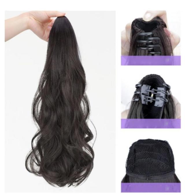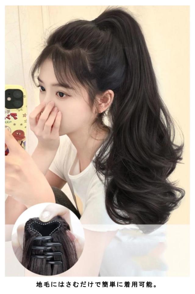 ポニーテール ウィッグ クリップ 自然 普段 使い つけ毛 部分 レディース ロング 黒 茶色 柔らかい 巻き髪 ウェーブ パーマ 簡単 バンス ワンタッチ ヘアアレンジ ウイッグ
