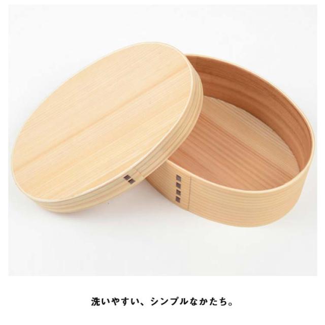 | 温もりあるわっぱ弁当箱 杉の木が保湿をしますので、冷めてもご飯が固くなりにくく美味しく頂けます。 洗いやすい、シンプルなかたち。 | |