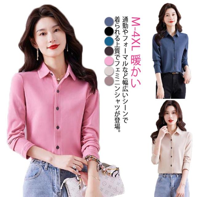 インナー 裏起毛 暖かい レディース 事務服 長袖 ブラウス スリム Yシャツ 秋 裏起毛シャツ 秋冬 シャツ 大きいサイズ ワイシャツ トップス スーツ ビジネス オフィスシャツ フォーマル あったか トップス OL 冬 制服 通勤 大人 シンプル 防寒