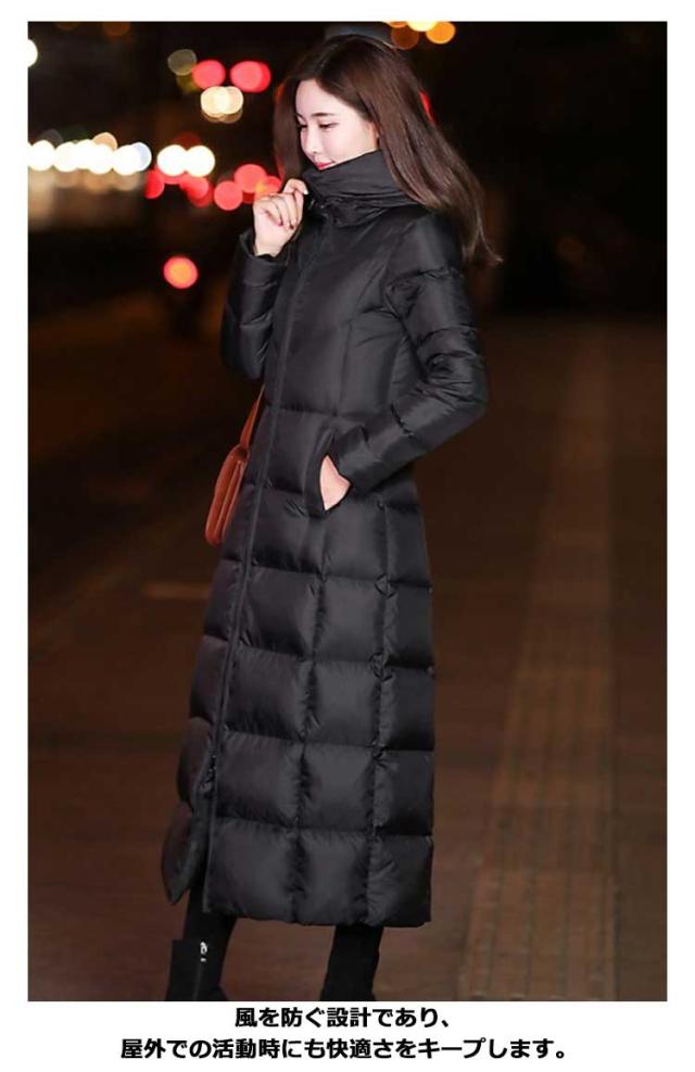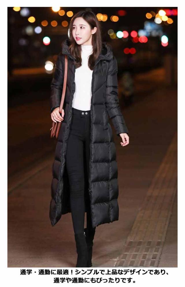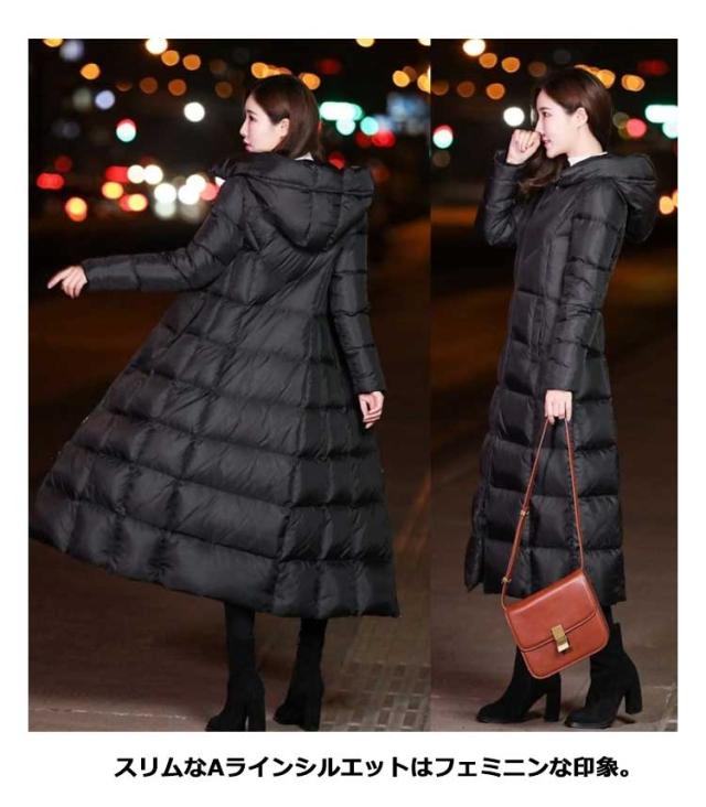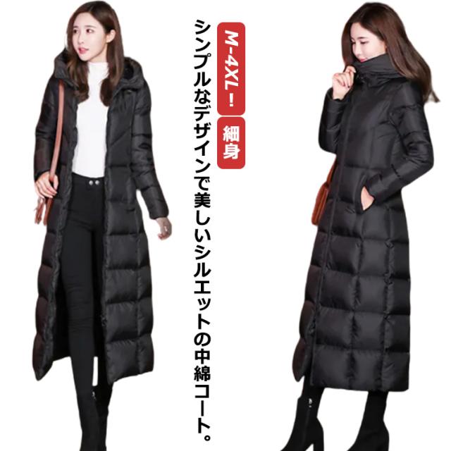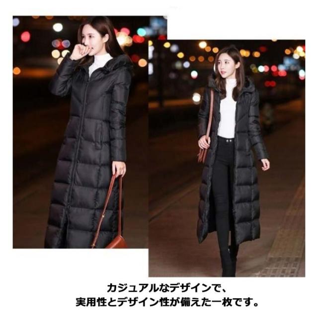 中綿コート レディース フード付き アウター 冬 ロングコート ジャンパー 膝下 ベンチコート 中綿 ジャケット ロング丈 体型カバー 厚手 秋冬 エコダウンコート 無地 軽量 保温 防寒 防風 撥水 冬服 あたっか スリム 着痩せ カジュアル 大人 通勤 おしゃれ ブラック 黒