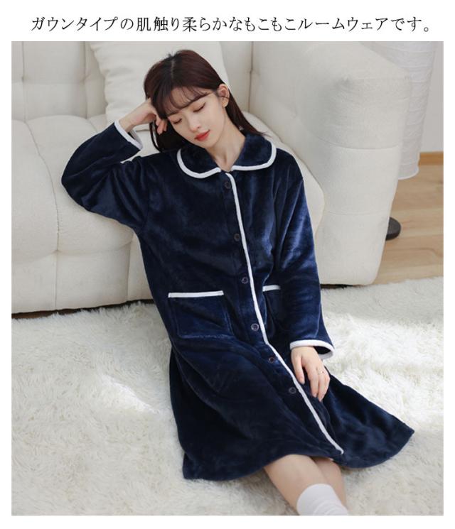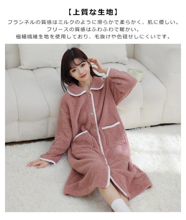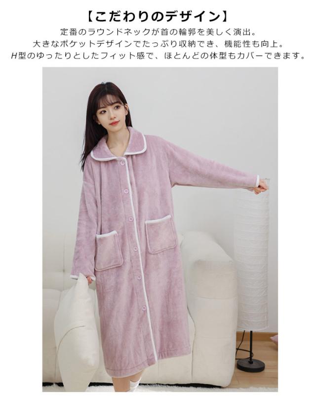 【M-XL】 着る毛布 レディース パジャマ ルームウエア あったか ガウン 毛布 ロング 暖かい 秋 冬 前開き ワンピース 冬用 保温 防寒 部屋着 寝巻き 大きいサイズ 厚手 長袖 ポケット ロング丈 ふわふわ もこもこ ゆったり 無地 カジュアル シンプル ぬくぬく おしゃれ