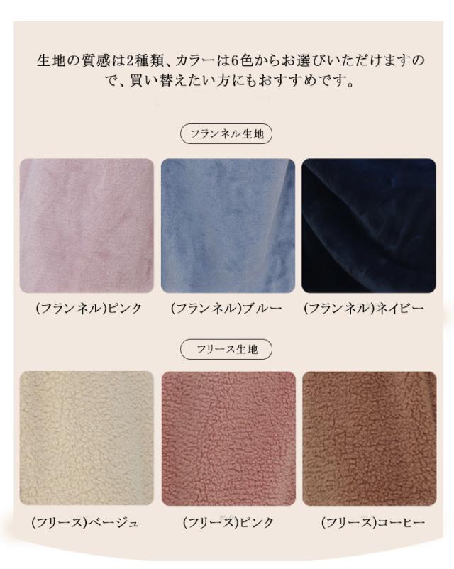 | 色 | (フリース)ベージュ (フリース)コーヒー (フリース)ピンク (フランネル)ネイビー (フランネル)ブルー (フランネル)ピンク |