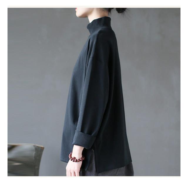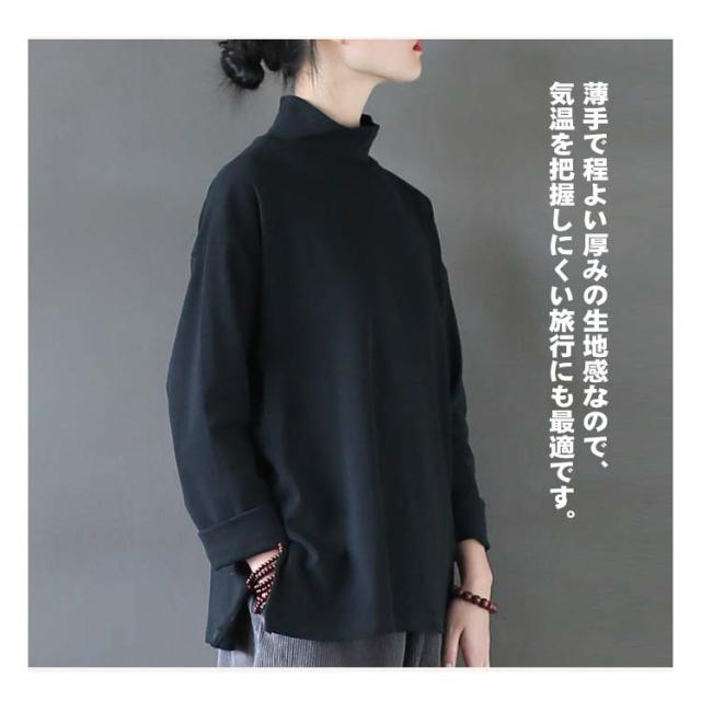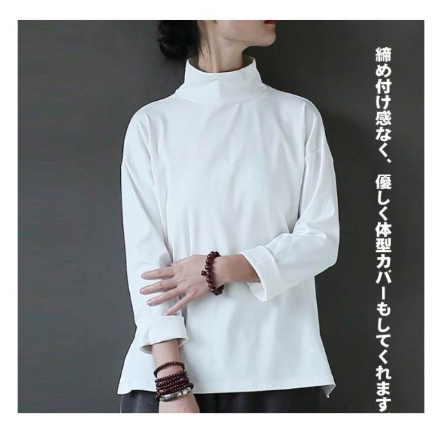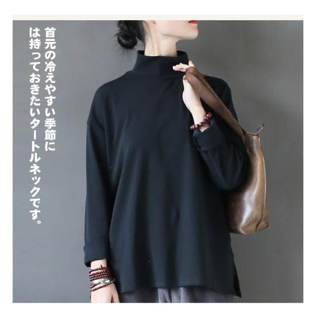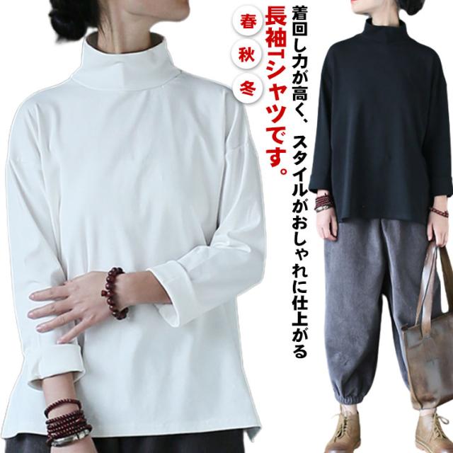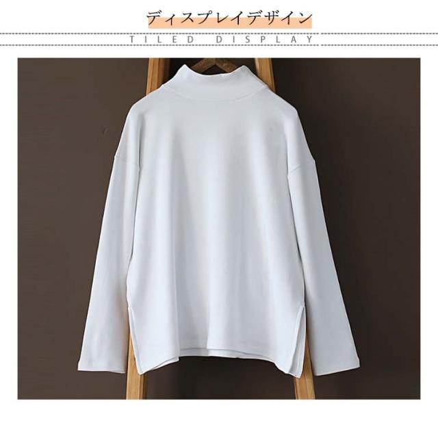 タートルネック ハイネック レディース Tシャツ 長袖 カットソー トップス カジュアル インナーシャツ 防寒 重ね着 春秋冬 肌着 無地 スリット入り お洒落 体型カバー キレイめ 送料無料