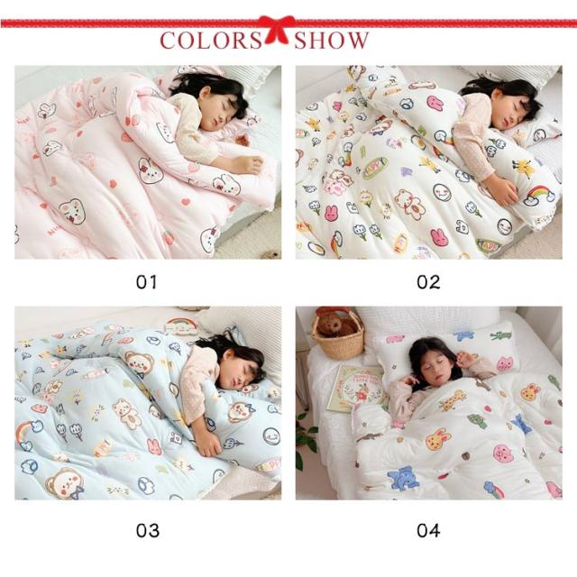 | 丸洗いOK♪子供用肌掛け布団。 肌触り部分は優しい綿コットン生地、カバー不要でお手入れ簡単。 夏の寝冷え対策タイプと春秋にちょうどいい2種類展開。 気軽に洗えて、乾きやすいから、お手入れも楽々。 万が一汚れても大丈夫です!ご自宅で洗えるからいつも清潔! 軽くてふかふか柔らかい、お肌に優しい。 | |