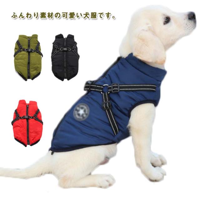犬 服 背開き 冬 暖かい 男の子 アウター 可愛い 女の子 あったか ペット服 大型犬 小型犬 中型犬 秋冬 中綿ジャケット ペット 冬服 背中 開き 袖なし 冬用 防寒 抜け毛防止 おもしろ 着せやすい ハーネス付 送料無料