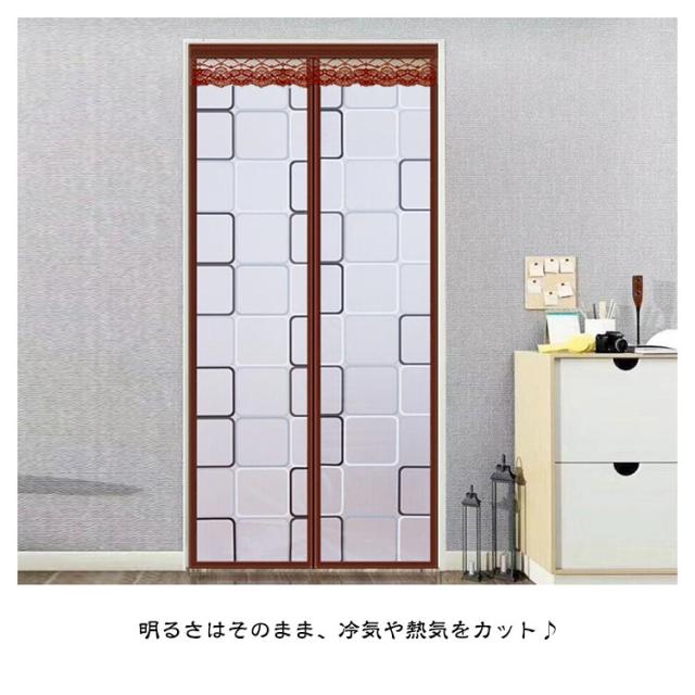 | 明るさはそのまま、冷気や熱気をカット♪ 通年活躍できるクリアタイプのドアカーテン。 ドアや窓枠全体をカバーできて冷気の侵入、暖気の流入を防ぎます。 ガラスの種類を選ばず、窓枠に貼るだけで保温効果UP。 窓枠に貼るだけで二重窓構造に、空気層を作ることにより、冷暖房効率up。 マグネットで自動閉じるから、屋外への出し入りも簡単。ペットのいるご家庭も安心。 面倒な工事が不要、女性の方でも簡単に操作できます。 リビング、居間、玄関、和室、洋室、廊下にといろいろな場所に活躍できる間仕切り のれんです。 | |