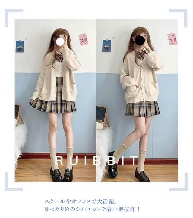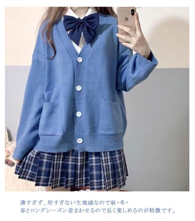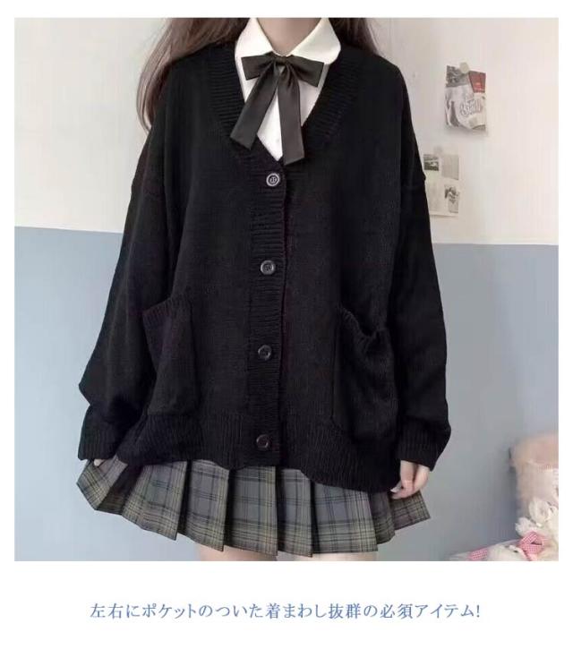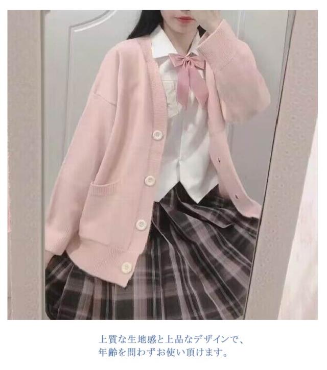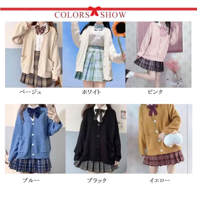 ニットカーディガン 女子 制服 ゆったり Vネック 前開き 秋冬 春 羽織り 学生服 スクールカーディガン スクールセーター 高校生 中学生 無地 シンプル かわいい 白 黒 ピンク 青 ベージュ 大きいサイズ 送料無料