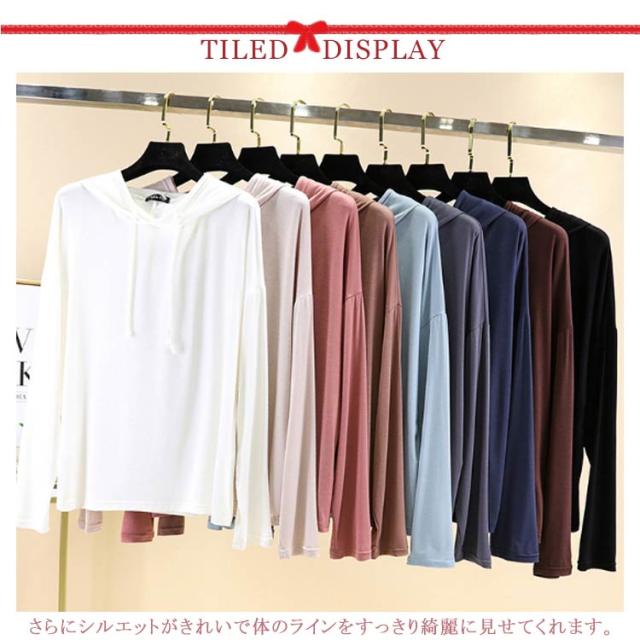 パーカー 薄手 伸縮性 フード付き ストレッチ tシャツ レディース 無地 長袖 トップス プルオーバー 無地パーカー 白 黒 シンプル カジュアル 大きいサイズ 春 夏 30代 40代 送料無料