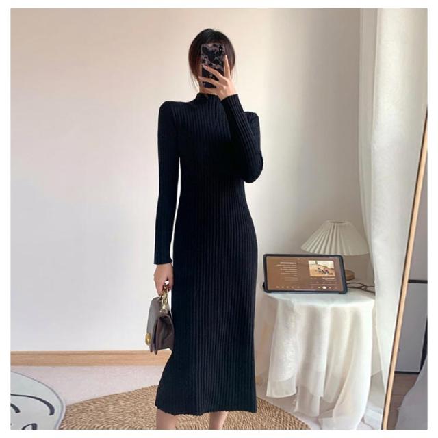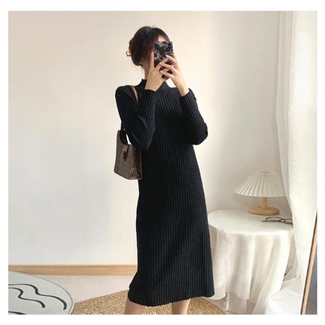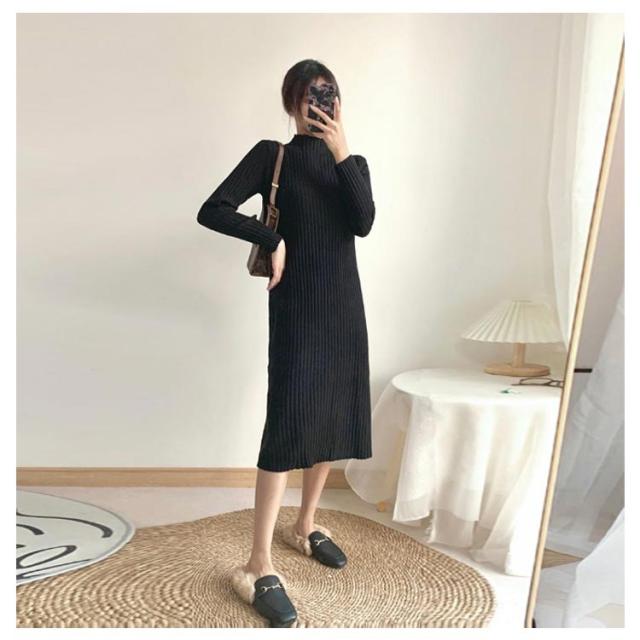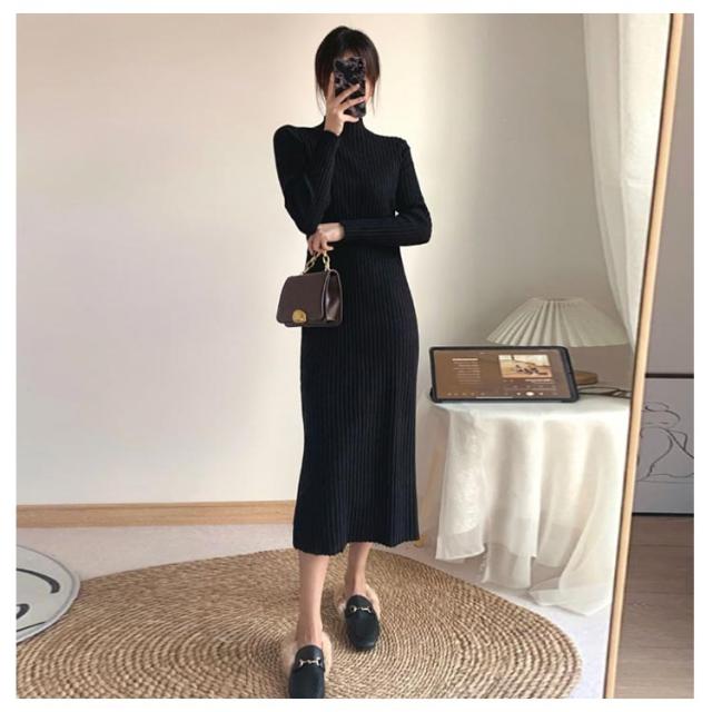 フォーマル ニットワンピース 長袖 リブニット 着?せ 秋冬 春 ロングワンピース 大きいサイズ 上品 結婚式 パーティ 発表会 エレガント ストレッチ ブラックワンピース 通勤 OL 大人 女性 無地 シンプル ギフト プレゼント 送料無料