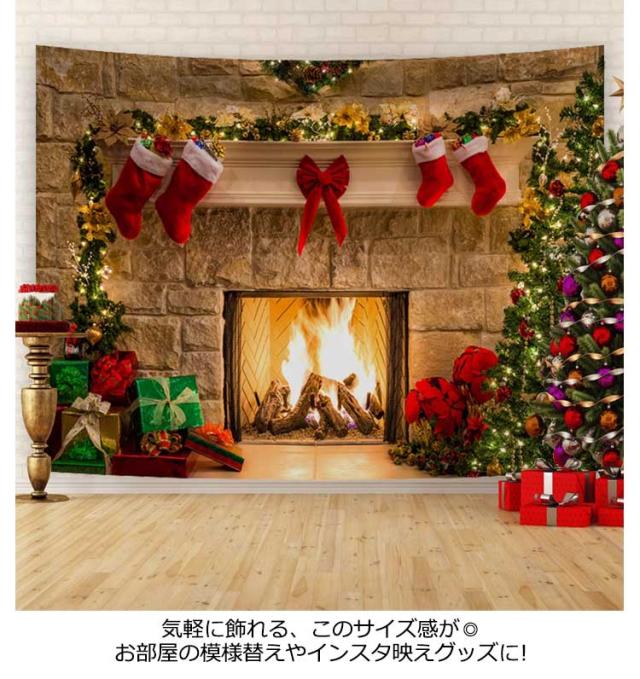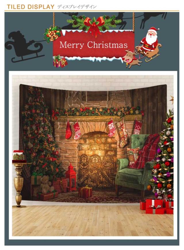 送料無料 タペストリー クリスマス イベント パーティー ツリー 装飾 USB ledライト付き サンタクロース 暖炉 グッズ 雑貨 diy モチーフ おしゃれ ポスター 大きい 95*75cm 150*130cm 絵 壁 インテリア 布 目隠し 背景布
