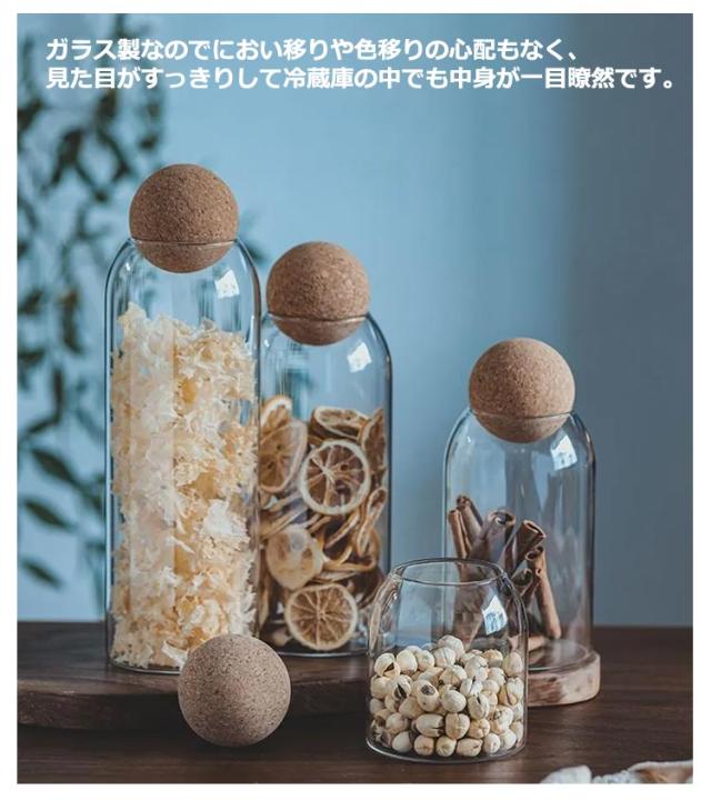| 耐熱ガラスとコルクを組み合わせたボトル型キャニスター(蓋付きの保存容器)です。 コーヒー豆や紅茶、砂糖や塩などを収納する際に活躍するキャニスター。 ボトル型なのでスプーンなどを使わず、容器を傾けて直接中身を出すことができます。 並べておくだけでもインテリアとして映えるデザインです。 ガラス製なのでにおい移りや色移りの心配もなく、見た目がすっきりして冷蔵庫の中でも中身が一目瞭然です。 | |