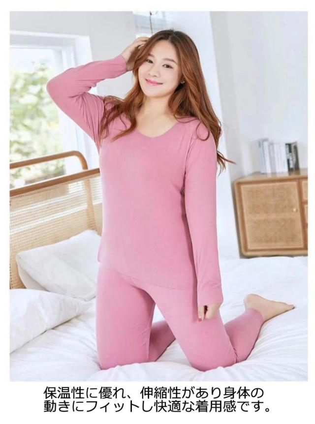 L−6XLサイズ!肌着 両面起毛 上下セット インナー レディース アンダーシャツ 吸湿 通気性 防寒 インナーシャツ パンツ 下着 秋冬用 長袖 クルーネック あったか 保温インナー 暖かい アンダーウエアセット 保温 ズボン ストレッチ