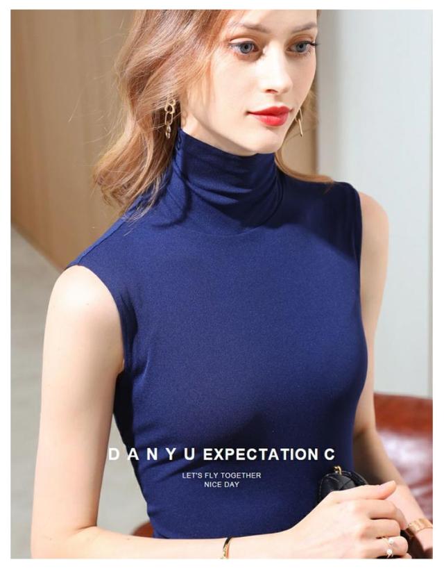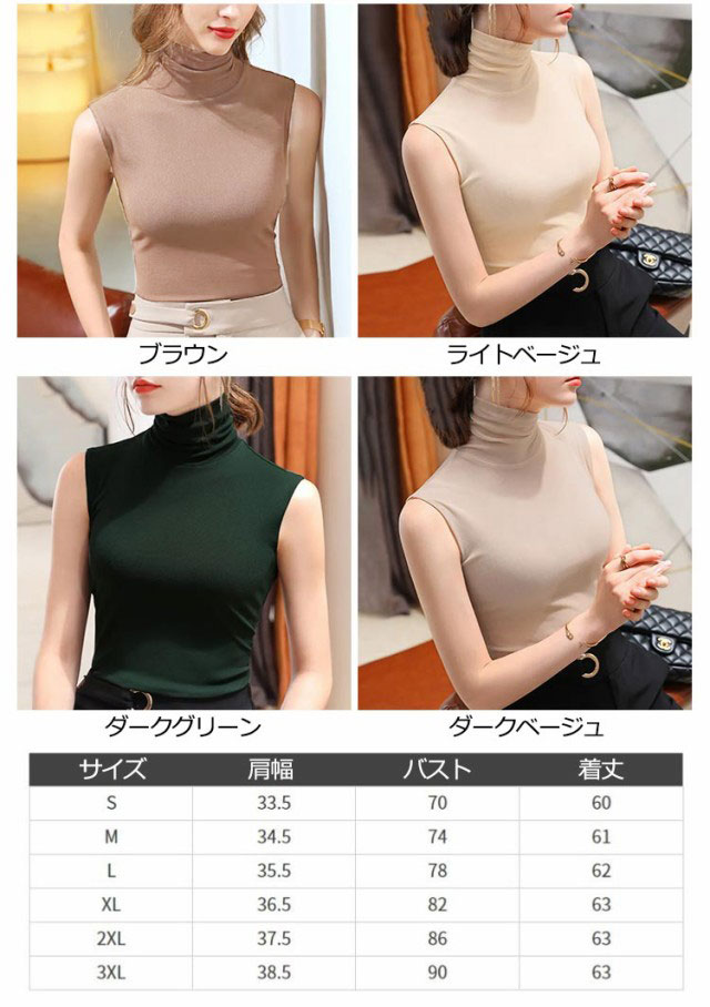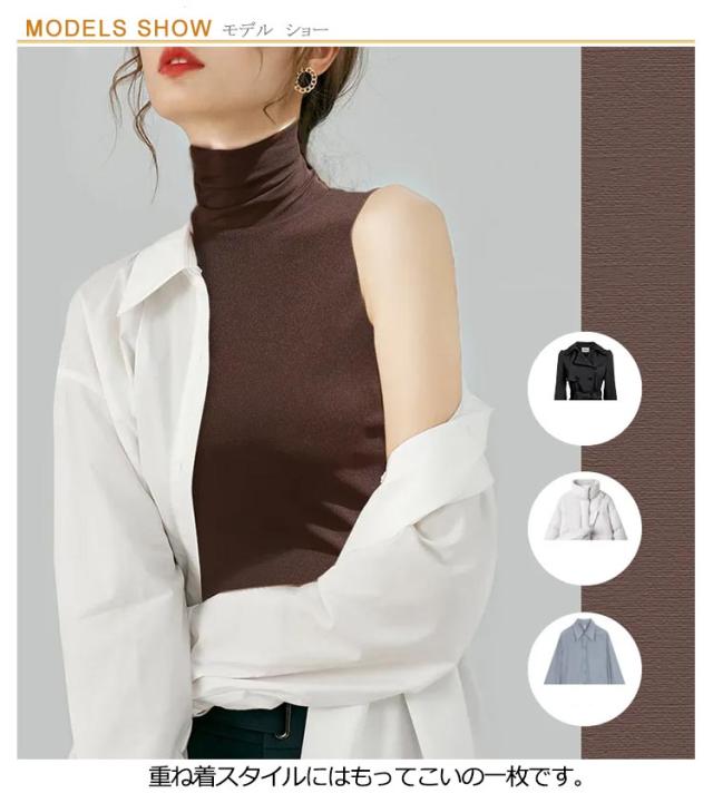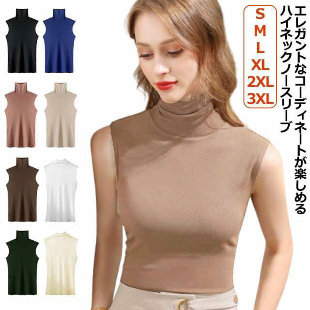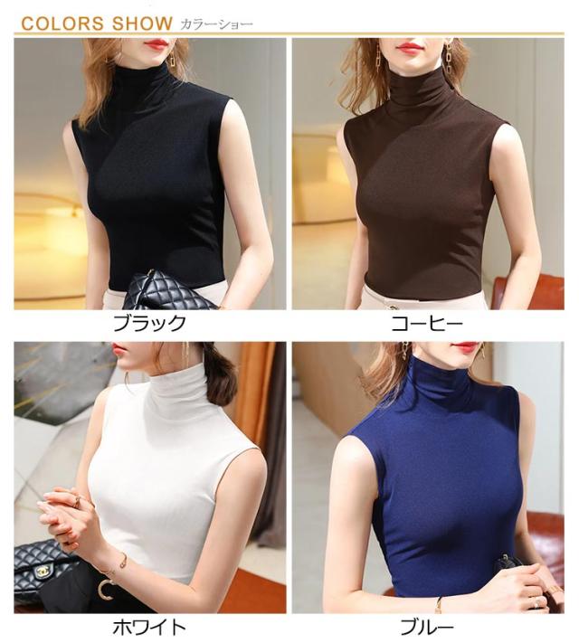 タートルネック ボトルネック ノースリーブ モダール 薄手 春夏 秋冬インナー ノースリーブ ノースリブ トップス カットソー コットン 綿 ハイネック ノースリーブ タートルネック ハイネック 送料無料