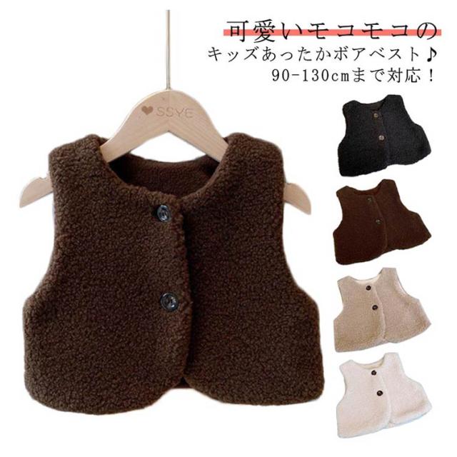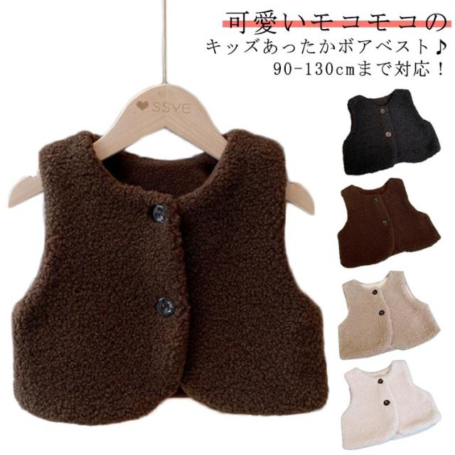 ボアベスト ボア ベスト キッズ 子供服 子ども 男の子 女の子 アウター ベスト もこもこ ふわふわ ボア ベビーベスト チョッキ こども 上着 防寒 羽織り 両面起毛 フリース 保育園 幼稚園 通園 無地 可愛い 送料無料 90 100 110 120 130cm