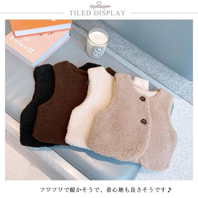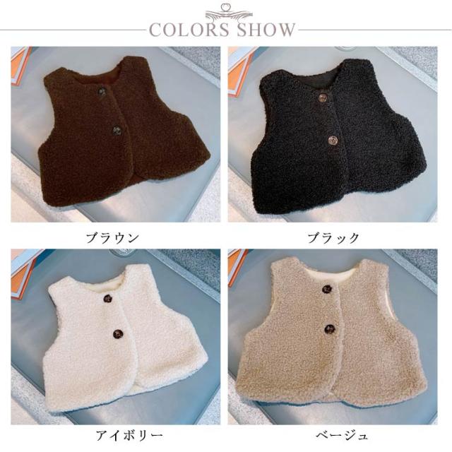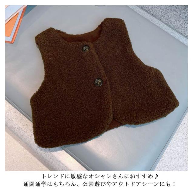 | 可愛いモコモコのキッズあったかボアベスト♪90-130cmまで対応! フワフワで暖かそうで、着心地も良さそうです♪ シンプルなデザインながら、ソフトでボリューミーなボアが高級感を演出! トレンドに敏感なオシャレさんにおすすめ♪通園通学はもちろん、公園遊びやアウトドアシーンにも! | |
