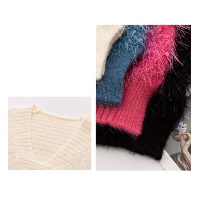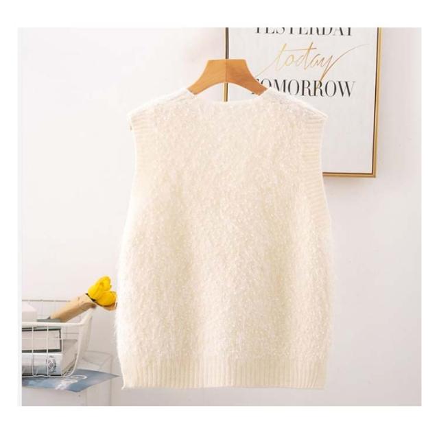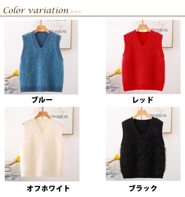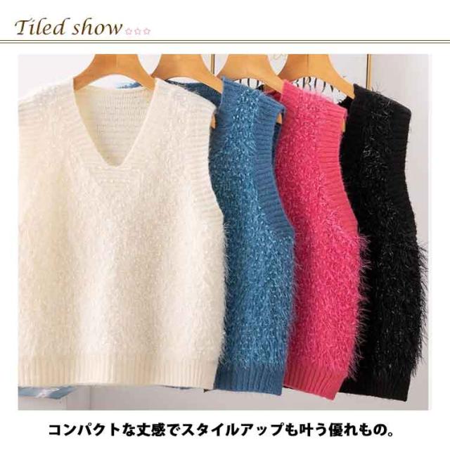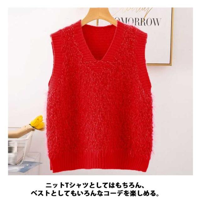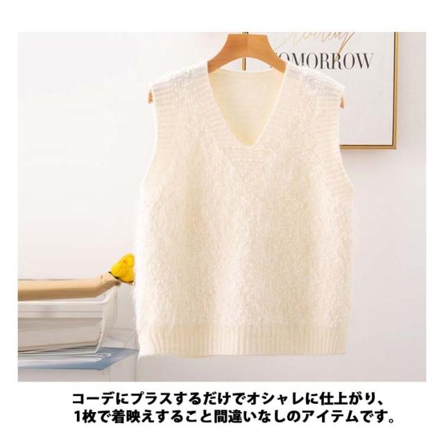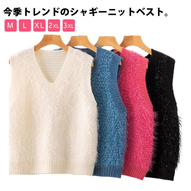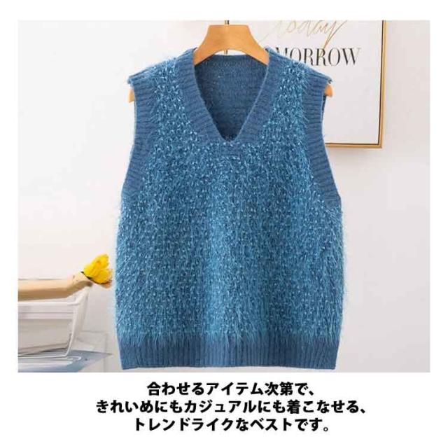 シャギーニットベスト トップス レディース ニットベスト Vネック ノースリーブ シャギーニット ニットトップス レイヤード セーター プルオーバー ふんわり ふわふわ きれいめ 可愛い 上品 春 秋 冬