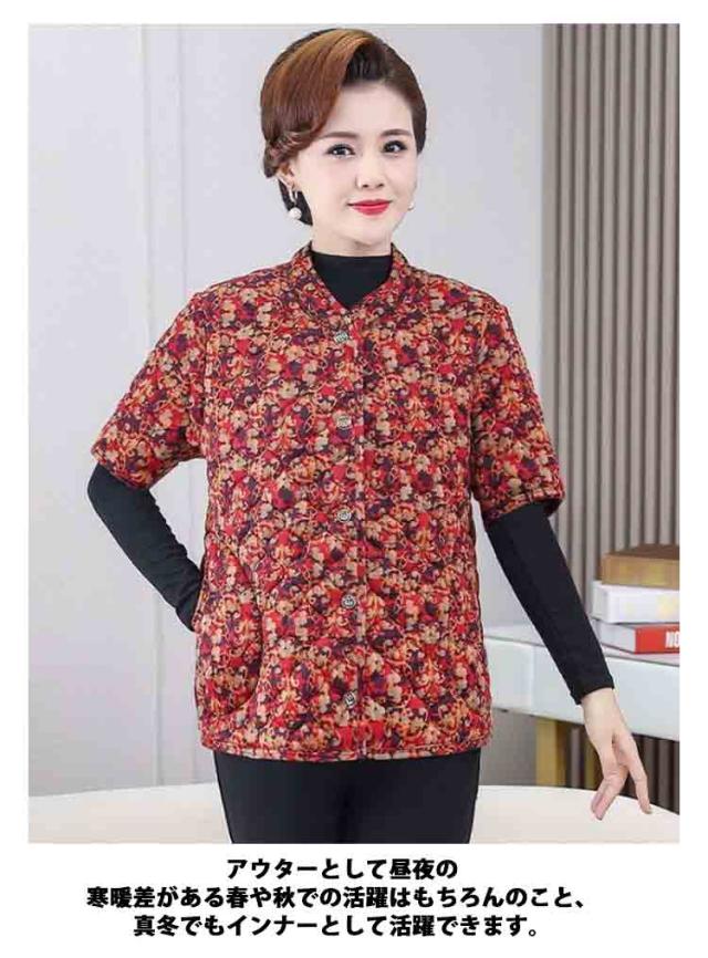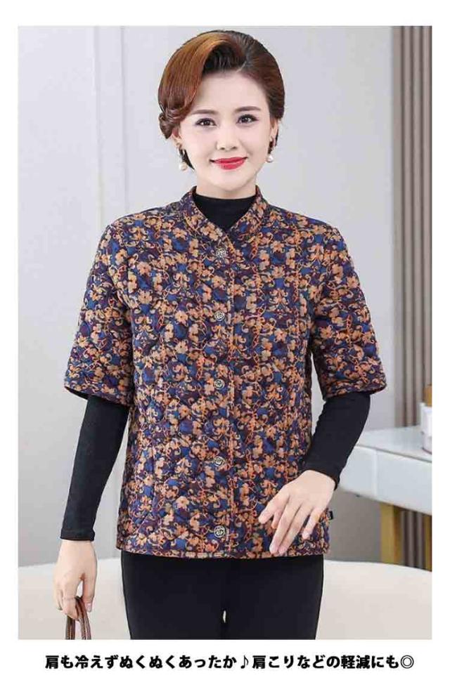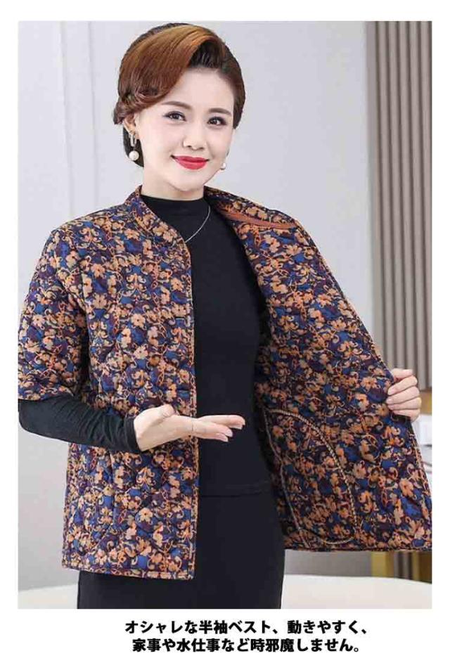 半袖ジャケット 半袖コート 中綿ジャケット シニア ミセス 80代 60代 コート 中綿入り アウター キルティングコート 半袖ベスト 70代 防寒 保温 秋冬 前開き ベスト 軽量 防寒 暖かい あったか カーディガン 寒さ対策 冷え対策