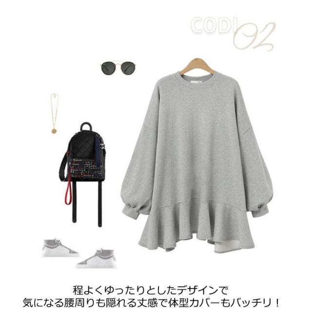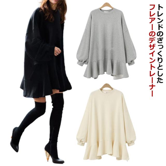 トレーナー レディース 裾フリル 長袖 トップス 大きめ オーバーサイズ カジュアル ゆったり 体型カバー トレンド オシャレ 大人 可愛い 韓国ファッション